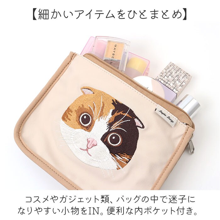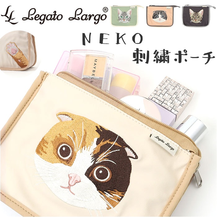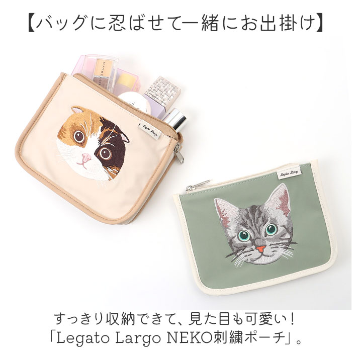 Legato Largo NEKO刺繍ポーチ【LBE.ライトベージュ】
