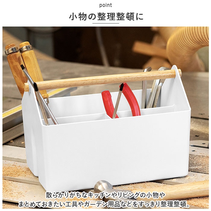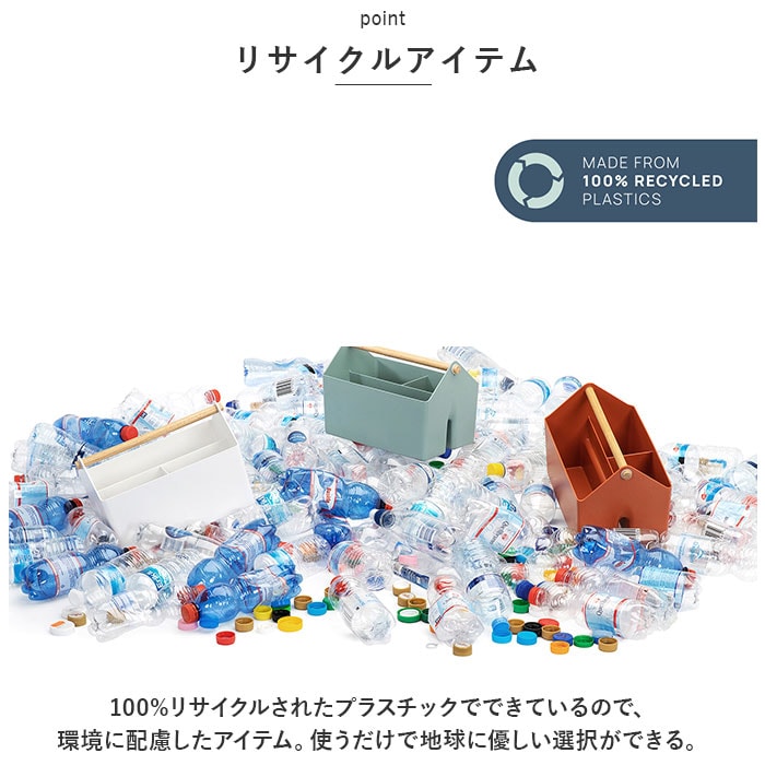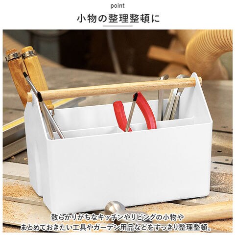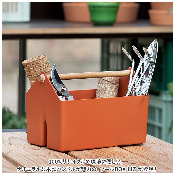 | 商品説明 | ・100%リサイクルで環境に優しい。ナチュラルな木製ハンドルが魅力の、ツールBOX LIZ が登場!【小物の整理整頓に】散らかりがちなキッチンやリビングの小物やまとめておきたい工具やガーデン用品などをすっきり整理整頓。【持ち運びしやすい】持ち手付きなので、必要な場所への移動もラクラク。いつでもサッと持ち運びが可能。ナチュラな木製の持ち手がおしゃれ☆【リサイクルアイテム】・100%リサイクルされたプラスチックでできているので、環境に配慮したアイテム。使うだけで地球に優しい選択ができる。【スタッキングができる】重ねて収納できる、スタッキングが可能。場所を取らずに縦に収納できるのも嬉しいポイント。【どこに置いてもOK】リビングやキッチン、洗面所、玄関、寝室など、どこに置いてもOK。インテリアに馴染むので、幅広い場所で使用できる。【仕切りつき】細かい物も収納できるよう、仕分けつきの仕様。大きさ別に収納してツールの中はスッキリ整理。 |