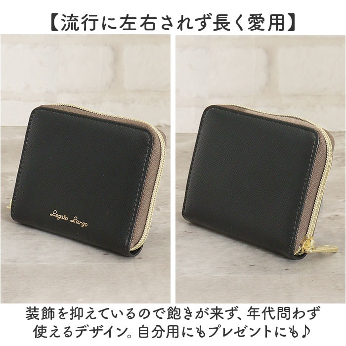 | 商品説明 | 【大人女子にぴったりなツートーン】配色使いがおしゃれな「Legato Largo ツートーンウォレット 2つ折り財布」。【さりげないアクセントをプラス】ファスナーテープと内側の配色がポイント☆ちょっぴり個性を出したい方におすすめ!【本革のようなお手入れは不要】表面は凹凸のあるシボ感が特徴のPU素材。傷や汚れが目立ちにくく、お手入れも簡単。【サッと持ち出しやすいサイズ感】かさばりにくく、ミニバッグにも収まる大きさ。シーンを問わず活躍◎【開閉スムーズ、安心のファスナー式】ラウンドファスナーで180度オープン。ファスナーを閉じれば飛び出しもガード。【現金やカードもすっきり収納】取り出しやすいボックス型の小銭入れの他、お札やカードを収納できるポケットを装備。【流行に左右されず長く愛用】装飾を抑えているので飽きが来ず、年代問わず使えるデザイン。自分用にもプレゼントにも♪【ポケット仕様】内側:スナップボタン式ボックス型小銭入れ×1、お札入れ×1、縦型カードポケット×2、横型フリーポケット×3 |