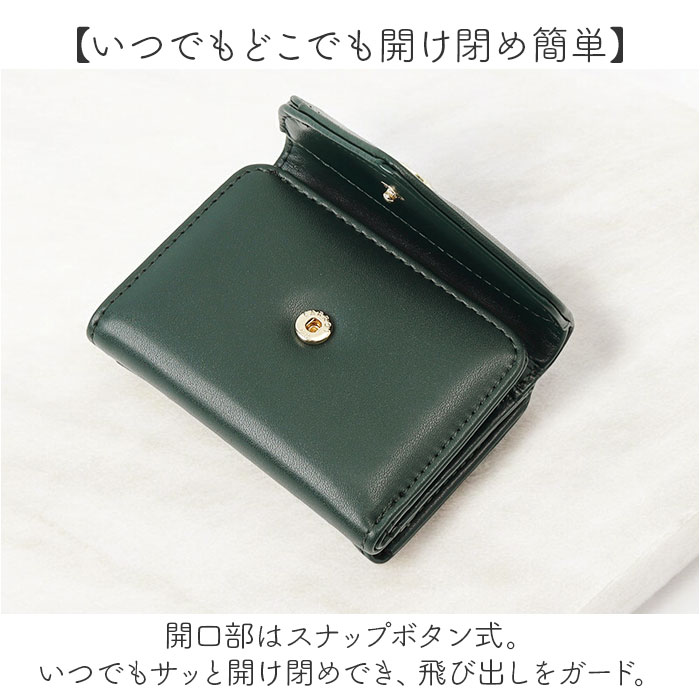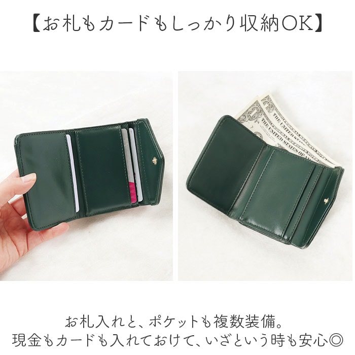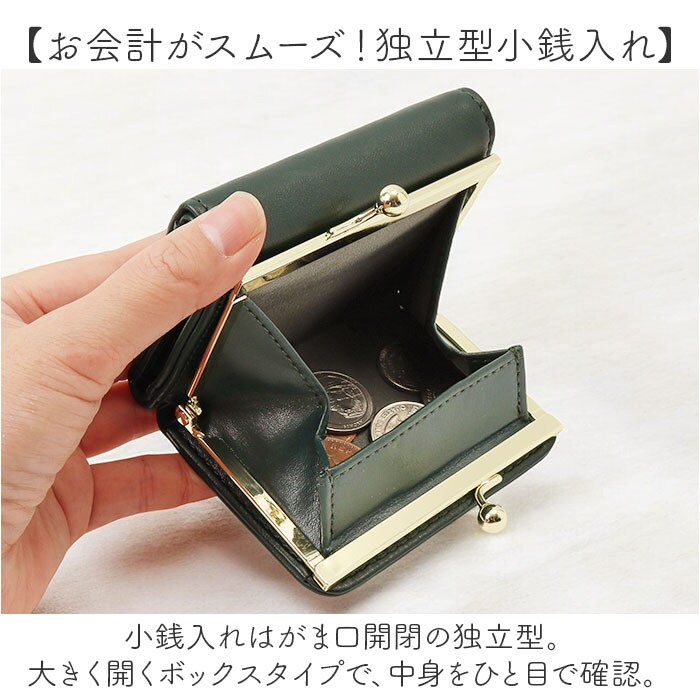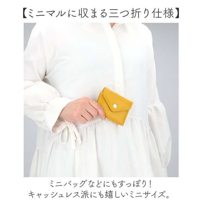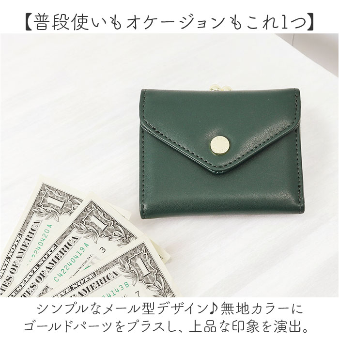 | 商品説明 | 【現金やカードをすっきりひとまとめ】おしゃれに持ち歩けて使いやすい♪「Legato Largo メール型がま口3つ折り財布」【ミニマルに収まる三つ折り仕様】ミニバッグなどにもすっぽり!キャッシュレス派にも嬉しいミニサイズ。【お会計がスムーズ!独立型小銭入れ】小銭入れはがま口開閉の独立型。大きく開くボックスタイプで、中身をひと目で確認。【いつでもどこでも開け閉め簡単】開口部はスナップボタン式。いつでもサッと開け閉めでき、飛び出しをガード。【お札もカードもしっかり収納OK】お札入れと、ポケットも複数装備。現金もカードも入れておけて、いざという時も安心◎【普段使いもオケージョンもこれ1つ】シンプルなメール型デザイン♪無地カラーにゴールドパーツをプラスし、上品な印象を演出。【ポケット仕様】内側:お札入れ×1、カードポケット×4背面:がま口式ボックス型小銭入れ×1 |