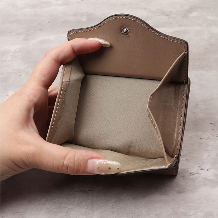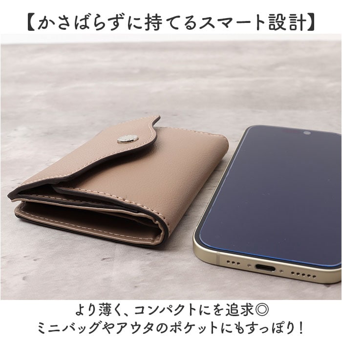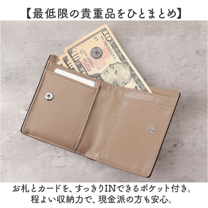 | 商品説明 | 【シーンを問わず持ち歩ける相棒】スリムで使い勝手抜群。「Legato Largo うすいサイフフラップ 2つ折り財布」。【かさばらずに持てるスマート設計】より薄く、コンパクトにを追求◎ミニバッグやアウタのポケットにもすっぽり!【アクセントになるフラップデザイン】フラップがポイントの小銭入れ。スナップボタン式&ボックス型で、出し入れも手間取らない♪【いつでもどこでも開け閉め簡単】二つ折り部分の開口部も、スナップボタン式。いつでもサッと開け閉めでき、飛び出しをガード。【最低限の貴重品をひとまとめ】お札とカードを、すっきりINできるポケット付き。程よい収納力で、現金派の方も安心。【面倒なお手入れは不要!】手触り柔らかなPU素材。特別なお手入れは必要なく、汚れなどは拭き取るだけでOK。【飽きが来ず長く愛用できるアイテム】年代問わず持ちやすいデザインと、お気に入りが見つかるカラー展開☆贈り物にもぴったり。【ポケット仕様】外側:スナップボタン式フラップ小銭入れ×1内側:お札入れ×1、カードポケット×6 |