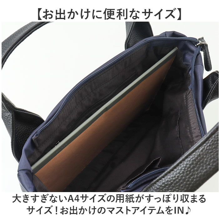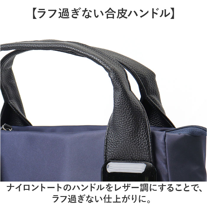 | 商品説明 | 【様々なシーンで使える】普段のお出かけや通勤通学にも使える万能バッグ☆ブラックスクエアナイロントートが発売♪【お出かけに便利なサイズ】大きすぎないA4サイズの用紙がすっぽり収まるサイズ!お出かけのマストアイテムをIN♪【ポーチなどかさばる物もOK】マチ幅を設け、ポーチや手帳など厚みがある小物もしっかり収納ができる。【4つのアウトポケットで整頓】小物が多くなっても安心♪外側に4つのアウトポケットですっきり整頓しながら収納可能。【多ポケットで機能的に使える】内側にも3つのポケット付き。外側のポケットと合わせて7ポケット搭載で機能的に使える♪【ラフ過ぎない合皮ハンドル】ナイロントートのハンドルをレザー調にすることで、ラフ過ぎない仕上がりに。【アクセントにスクエアの留め具】ハンドルの留め具部分には大きな黒色のスクエアモチーフを採用。【ちょっとの汚れや雨を弾く】表地は撥水性があり、通り雨程度の水分やちょっとした汚れを弾くのでお手入れも楽チン☆※【デイリーで大活躍な軽量さ】軽量で使い勝手抜群!デイリー使いにはもちろん、通勤バッグとしてもおすすめ。【ポケット仕様】メインルーム・・・ファスナーポケット×1、オープンポケット×2フロント・・・オープンポケット×1(マグネットボタン付き)両サイド・・・オープンポケット×1ずつ背面・・・ファスナーポケット×1【注意事項】※完全防水ではございません |