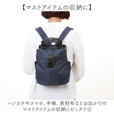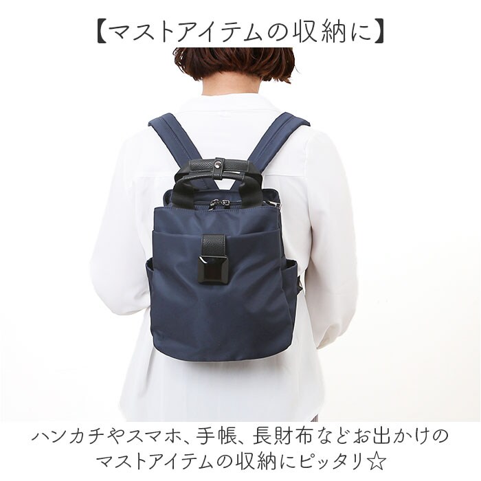 | 商品説明 | 【小さいけど機能的に使える】小さめサイズが嬉しい♪計7ポケット付きブラックスクエアナイロンミニリュックが発売。【マストアイテムの収納に】ハンカチやスマホ、手帳、長財布などお出かけのマストアイテムの収納にピッタリ☆【ポーチなどかさばる小物も】マチ幅を広く設けポーチやミニ飲料ボトルなどかさばる小物もすっきり入る◎【仕分けて収納できる7ポケット】内外側に計7ポケットを搭載し、小物が多い日も仕分けて収納できる。【手持ち用のハンドル付き】リュックの上部にハンドルを配置。手持ちやサッと持ち出したいときに便利☆【毎日使えるナイロン素材】軽く毎日使っても負担にならないナイロン素材。丈夫さも嬉しいポイント。【ラフになりすぎないレザー調】ハンドルなどポイントで合皮素材を使うことにより、ラフ過ぎない仕上がりに。【アクセントにスクエアの留め具】フラップの留め具に大きなスクエアモチーフを使用しアクセントに。【大きく開く開口部】ダブルファスナーでメインルームはガバッと大きく開き小物の出し入れがスムーズ。【ちょっとの汚れや雨を弾く】表地は撥水性があり、通り雨程度の水分やちょっとした汚れを弾くのでお手入れも楽チン☆※【ポケット仕様】メインルーム・・・・ファスナーポケット×1フロント・・・・マグネットボタン付きポケット×2背面・・・ファスナーポケット×2両サイド・・・オープンポケット×1ずつ【注意事項】・※完全防水ではございません |