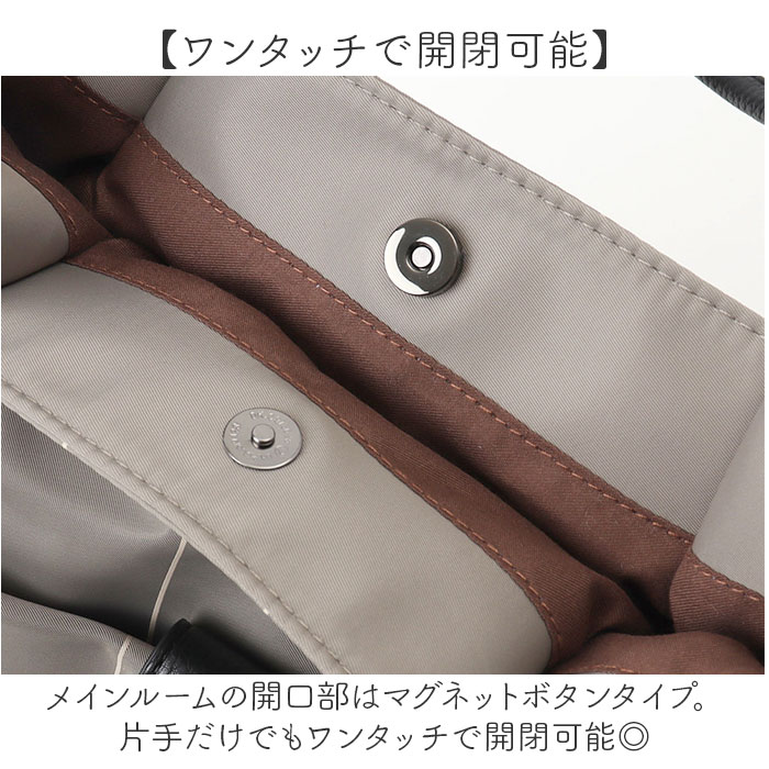 | 商品説明 | 【様々なシーンで使える】普段のお出かけや通勤通学にも使える万能バッグ☆ブラックスクエアナイロントートバッグ。【スマートなシルエット】縦型なので持ち運びやすいスマートなシルエットがポイント☆【通勤通学シーンにも対応】クリアファイルなどの書類ケースにも対応したA4サイズ。通勤通学用にもオススメ♪【4つのポケットで整頓】小物が多くなっても安心♪内外側に4つのアウトポケットですっきり整頓しながら収納可能。【肩掛けが可能なハンドル】ハンドルは長めに設計され、肩掛けができるので荷物が多い時も持ち運びに便利。【アクセントにスクエアの留め具】フラップの留め具に大きなスクエアモチーフを使用しアクセントに。【毎日使えるナイロン素材】軽く毎日使っても負担にならないナイロン素材。丈夫さも嬉しいポイント。【ラフになりすぎないレザー調】ハンドルなどポイントで合皮素材を使うことにより、ラフ過ぎない仕上がりに。【ちょっとの汚れや雨を弾く】表地は撥水性があり、通り雨程度の水分やちょっとした汚れを弾くのでお手入れも楽チン☆※【ワンタッチで開閉可能】メインルームの開口部はマグネットボタンタイプ。片手だけでもワンタッチで開閉可能◎【ポケット仕様】メインルーム・・・・ファスナーポケット×1、オープンポケット×1フロント・・・・マグネットボタン付きポケット×2背面・・・ファスナーポケット×1【注意事項】※完全防水ではございません |