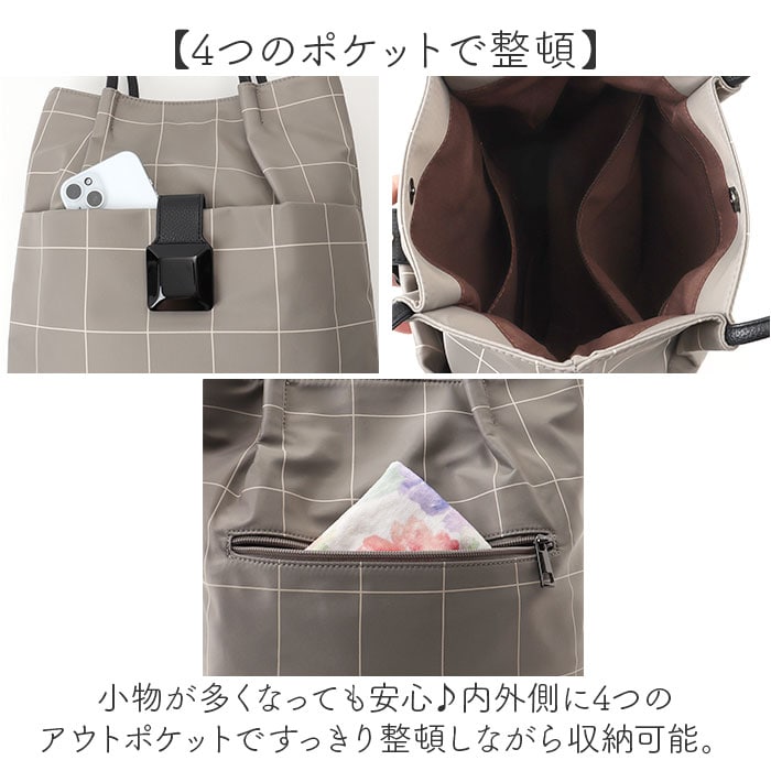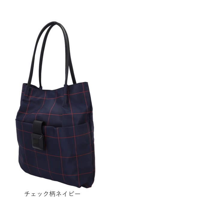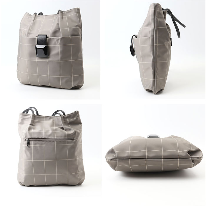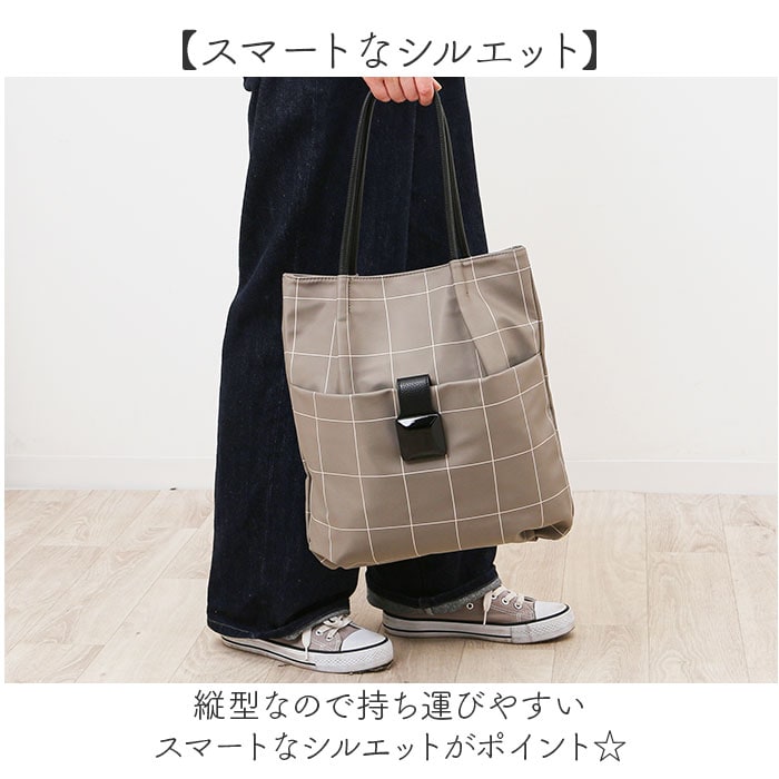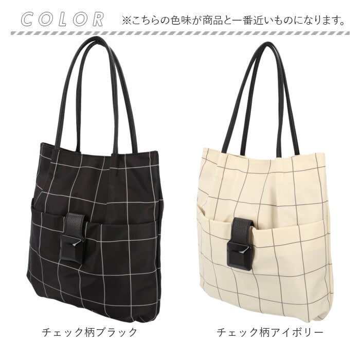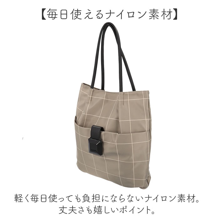 ブラックスクエアナイロンシンプルトート【チェック柄アイボリー】