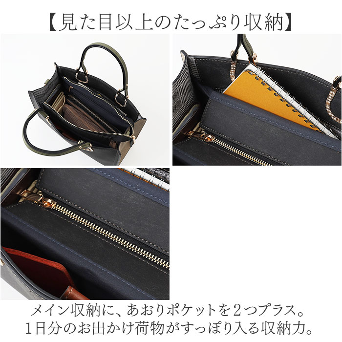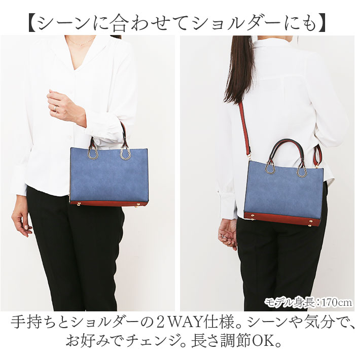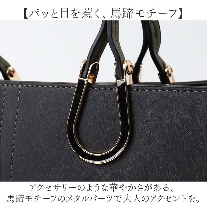 | 商品説明 | 【幸せをキャッチする馬蹄モチーフ♪】グッと垢ぬける、大人のためのバッグ「エポメタルデニムライクトライカラーバッグ」が登場。【デニム風×トライカラーが魅力】風合いのある、デニム風合皮素材を採用。こなれた印象のトライカラーでおしゃれ度UP☆【パッと目を惹く、馬蹄モチーフ】アクセサリーのような華やかさがある、馬蹄モチーフのメタルパーツで大人のアクセントを。【細部までこだわったおしゃれさ】内布はグレンチェック柄を採用。バッグを開けたときにもおしゃれ魅せする、上級者デザイン。【見た目以上のたっぷり収納】メイン収納に、あおりポケットを2つプラス。1日分のお出かけ荷物がすっぽり入る収納力。【スマートに自立するバッグ】バッグはテーブルや椅子に置いても様になる、自立する作り。底鋲つきで、傷つきにくい。【シーンに合わせてショルダーにも】手持ちとショルダーの2WAY仕様。シーンや気分にで、お好みでチェンジ。長さ調節OK。【ポケット仕様】メイン収納:オープンポケット×1、ファスナーポケット×1メイン収納前後:あおりポケット×2 |