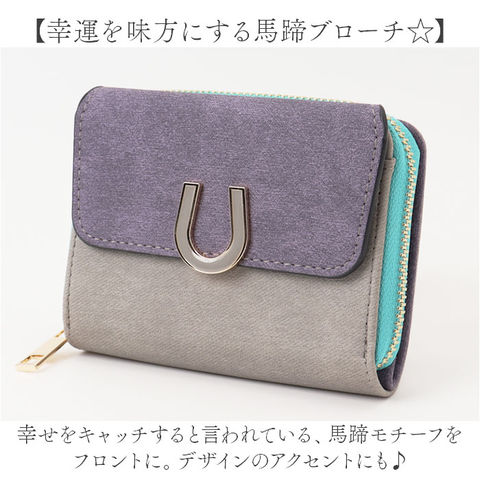 | 商品説明 | 【どんなシーンにも素敵にマッチ】シンプルで上品な印象♪いつでも相棒として活躍「2つ折り財布 ファスナー型小銭入れ」。【スマートに見えてしっかり収納】コンパクトに持ち歩ける2つ折り財布!収納力もあり、現金派にもキャッシュレス派にも。【幸運を味方にする馬蹄ブローチ☆】幸せをキャッチすると言われている、馬蹄モチーフをフロントに。デザインのアクセントにも♪【大きく開くファスナー式小銭入れ】スムーズに開き、分けて収納できる2スペース仕様。お会計の際も手間取らない独立タイプ。【いつでもどこでも開け閉め簡単】背面の開口部はスナップボタン式。いつでもサッと開け閉めでき、飛び出しをガード。【お札もカードもすっきり整頓】深めに設計されたお札入れ。ポケットも充実しており、増えがちなカードもサッと取り出し◎【使用頻度の高いカードや大切な物を】フロントポケットはスナップボタン式。よく使うカードはもちろん、チケットや免許証等を収納。【面倒なお手入れいらずが嬉しい】本革のような特別なお手入れは必要なく、汚れなどは拭き取るだけ。気軽に使えるアイテム。【自分用にも贈り物にもおすすめ】複数のカラーを使い、おしゃれに仕上げた折り財布。年代問わず使いやすいデザインが魅力◎【ポケット仕様】前面:スナップボタン式フラップポケット×1中央:ファスナー式小銭入れ×1(内側2スーペース仕様)背面内側:お札入れ×1、カードポケット×6、フリーポケット×4 |