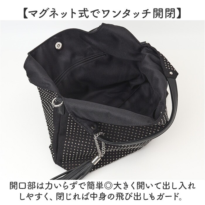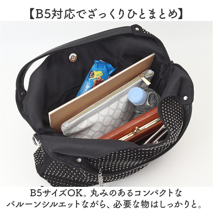 | 商品説明 | 【おしゃれにお出かけできる相棒】コーデのアクセント使いにもぴったり!「ホットフィックスバルーントート ミニ2WAY」。【キラキラスタッズで気分もアップ☆】柔らかなコットン生地にスタッズを散りばめた、目を惹くデザイン。シーズンレスで活躍!(※)予備のスタッズが付属。【お好みに合わせてスタイルチェンジ】手持ちで。長さ調節可能なショルダーを取り付け、肩掛けや斜め掛けも自在な2way♪【マグネット式でワンタッチ開閉】開口部は力いらずで簡単◎大きく開いて出し入れしやすく、閉じれば中身の飛び出しもガード。【B5対応でざっくりひとまとめ】B5サイズOK。丸みのあるコンパクトなバルーンシルエットながら、必要な物はしっかりと。【サクッと取り出せて迷子知らず】合計4つのポケットを配置。バッグの中で、小物を探す手間が不要。【細かい部分にもこだわりをプラス】異素材で仕上げたショルダー&タッセル。外側ファスナー部分もフェイクレザーでパイピング。【お気に入りを選べるカラー】シンプルなワンカラーや、個性の光る柄物をラインナップ。カラーにより雰囲気もガラリ♪【ポケット仕様】内側:オープンポケット×2、ファスナーポケット×1外側:ファスナーポケット×1 |