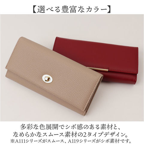 | 商品説明 | 【大容量で上品な長財布】カード収納と豊富なカラバリで毎日が華やぐロングウォレット。【豊富なカード収納】カードが9枚入る設計で、ポイントカードも会員証もすっきり整理できる便利さ◎【エレガントな装飾】ゴールドの金具がアクセントになり、持つだけで気分が上がる上品な印象を演出してくれる♪【選べる豊富なカラー】多彩な色展開でシボ感のある素材と、なめらかなスムース素材の2タイプデザイン。 |
