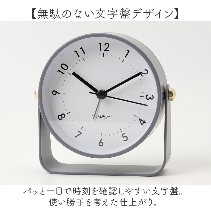 | 商品説明 | 【おしゃれに置ける置き時計】大人な雰囲気で、使い勝手もばっちり。「Lipad アラームクロック」。【圧迫感がなく、場所を選ばない】ころんと可愛い、丸みのあるフォルム。ベッドボードやサイドテーブルに置きやすいサイズ感。【無駄のない文字盤デザイン】パッと一目で時刻を確認しやすい文字盤。使い勝手を考えた仕上がり。【静かなスイープムーブメント】カチカチ音が鳴らないムーブメントを採用。音を気にせず集中でき、睡眠も妨げない◎【暗いお部屋でも時刻をサッと確認】背面のボタンを押すと、光が文字盤を照らすナイトライト機能付き。時間の確認がスムーズ。(※)手動で押している間のみ点灯します。【朝もすっきり起きられるアラーム】起きる時刻を知らせてくれる、アラーム機能も搭載。快適な目覚めをサポート♪【お好みに合わせて自在に角度調節】・360度回転し、角度は無段階調節可能。置き方を選ばず、シーンやお好みに応じてアレンジ。【空間に馴染むシンプルデザイン】マットで落ち着きのあるくすみカラー♪スッと溶け込み、温かみのある空間に。(※)別売りの単3電池1個使用。 |