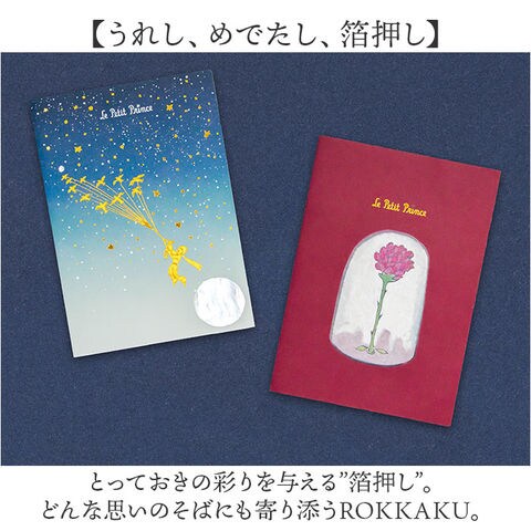 | 商品説明 | 【星の王子さまの世界感を楽しめる】名作「星の王子さま」と箔押しブランド「ROKKAKU」のコラボ♪「文庫本サイズノート」。【小さな王子さまの大冒険がテーマ】旅立ちのとき、旅での出会いや気づき。宇宙に広がる星や、ガラスのきらめきを箔押し。【より鮮やかに彩る上品な箔押し】きらきら輝く箔押し♪星の王子さまの世界を鮮やかに描いて、特別感のある1冊に。【持ち歩きに便利な文庫本サイズ】ミニバッグにも収まりやすく、かさばりにくいA6サイズ。いつでも持ち歩けるのが嬉しい!【自分だけのオリジナルノートが完成】自由に書ける無地の80枚仕様。気づいたことをメモしたり、レシピノートや日記としても☆【自分用にもプレゼントにも最適】お好みのイメージに合わせてチョイスしたり、ギフトにもおすすめ。裏面も箔押し入り&日本製♪【うれし、めでたし、箔押し】とっておきの彩りを与える”箔押し”。どんな思いのそばにも寄り添うROKKAKU。 |