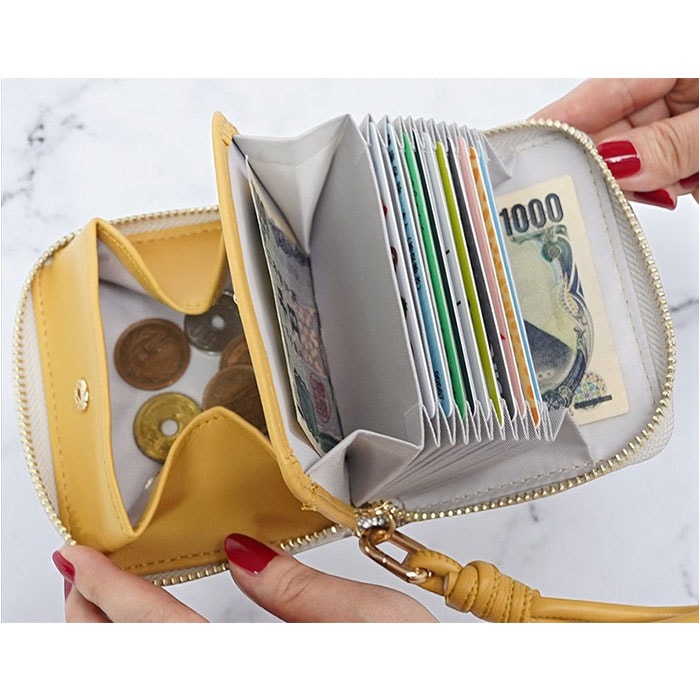 | 商品説明 | 【デイリー使いしやすい】コンパクトなのに収納力抜群!スタイリッシュなミドル財布。【カードポケットが充実】内側にカードポケット×10、お札を折らずにくぐらせて収納できるフリーポケットを装備。【独立した小銭入れ】大きく開く独立型の設計で中身が見やすく出し入れもスムーズ!【カラーコードストラップ付き】カラーによって異なるコードストラップがアクセントになっておしゃれ。【手のひらサイズ】片手で持てるサイズだから小さなバッグにもすっぽり入る◎ |