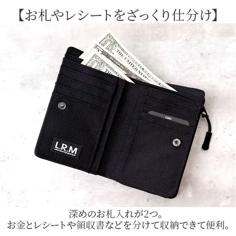 | 商品説明 | 【毎日持ち歩ける万能アイテム】シーンを問わず活躍◎収納力も使い勝手もばっちりな「L.R.M ミドル財布」。【スマートに持ち運べて使い勝手抜群】必要な物がすっきりまとまる、二つ折り財布。バッグにもINしやすいサイズ感。【ガバっと開く独立型小銭入れ】背面の小銭入れはL字ファスナーでオープン。仕分けできる内側2ルーム仕様。(※)内側にポケットを2つ配置。【いつでもどこでも開け閉め簡単】開口部はスナップボタン式。いつでもサッと開け閉めでき、飛び出しをガード。【お札やレシートをざっくり仕分け】深めのお札入れが2つ。お金とレシートや領収書などを分けて収納できて便利。【増えがちなカード類もたっぷり収納】カードポケット&フリーポケットが充実。1枚ずつ見やすく入れておけるのがポイント。【サッと取り出せる前面ポケット】前面にもポケットを配置。ICカードなど、使用頻度の高いものをIN。【簡単に装着できるカラビナ付き】付属のカラビナを使って、バッグのハンドルやベルトループなどに取り付け可能。【お気に入りを選べるデザイン】質感やデザインが異なる2タイプ。シンプルなデザインで、ギフトにもおすすめ。【アウトドアブランド、L.R.M】アクティブスタイルを、もっと気軽に持てるアイテムに昇華させたいという思いから誕生。(※)LARGE RADIATION MANIPULATEの略です。【ポケット仕様】内側:お札入れ×2、カードポケット×8、フリーポケット×4前面:オープンポケット×1背面:L字ファスナー式小銭入れ×1(内側にオープンポケット×2) |