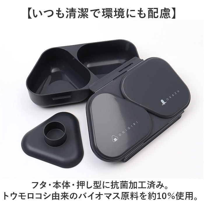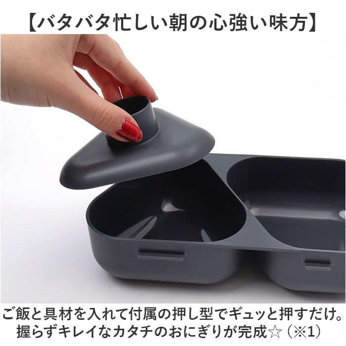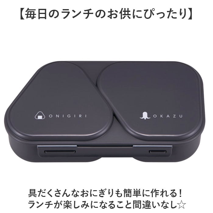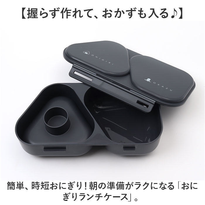 | 商品説明 | 【握らず作れて、おかずも入る♪】簡単、時短おにぎり!朝の準備がラクになる「おにぎりランチケース」。【バタバタ忙しい朝の心強い味方】ご飯と具材を入れて付属の押し型でギュッと押すだけ。握らずキレイなカタチのおにぎりが完成☆(※1)本体にラップを敷いて作ってください。【おにぎりとおかずを自由に組み合せ】おにぎりが2つ入る、容量625ml。片側におかずを入れれば、ミニお弁当箱に!【しっかり食べたい時におすすめ】爆弾おにぎりもOK☆作れるおにぎり1個はお茶碗1.4杯分、コンビニおにぎりの約2倍!(※2)お茶碗1杯を約200mlと計算しています。【通勤・通学時なども持ち運び楽々】フタは2点ロックで固定。2つに仕切られたケースなので、片寄りの心配も不要。(※3)密閉仕様ではありません。【いつも清潔で環境にも配慮】フタ・本体・押し型に抗菌加工済み。トウモロコシ由来のバイオマス原料を約10%使用。【レンジ対応!熱々ごはんが復活】本体のみ電子レンジでの温めが可能。オフィスでも温かいランチを楽しめる!【毎日のランチのお供にぴったり】具だくさんなおにぎりも簡単に作れる!ランチが楽しみになること間違いなし☆ |