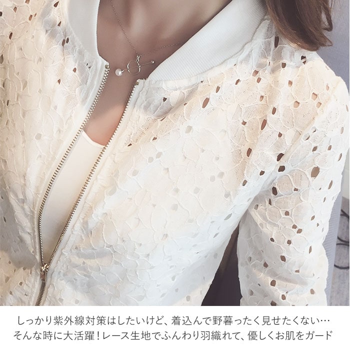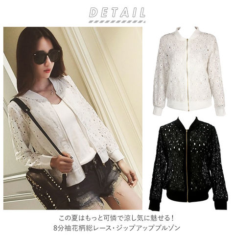 | 商品名 | 総レース ジップアップブルゾン 花柄 8分袖 |