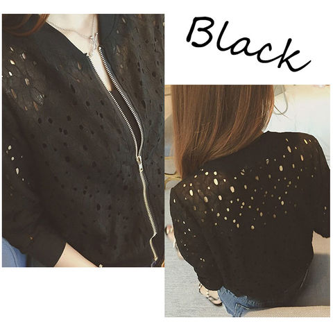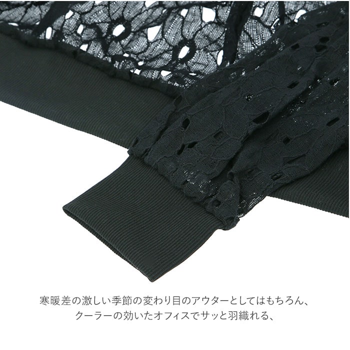 総レース ジップアップブルゾン 花柄 8分袖【ブラック】【Mサイズ】