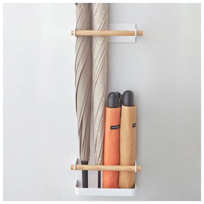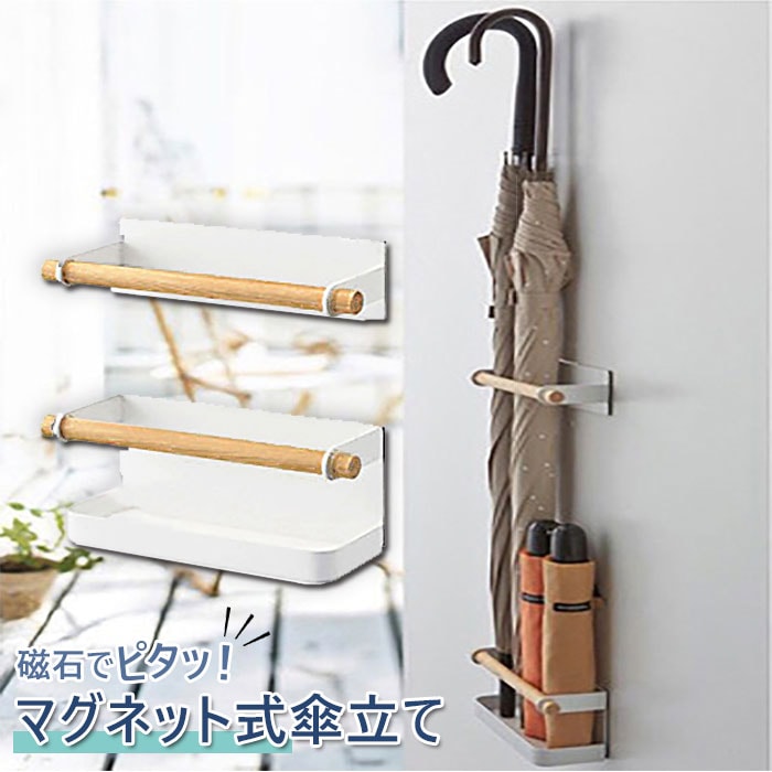 | 商品説明 | 磁石でピタッ!シンプルでナチュラルなデザインの、マグネット式傘立てが発売。鉄製のドアや磁石のくっつく場所にカンタン取り付け!あっという間に、コンパクトな収納スペースに変身◎上ホルダーと下ホルダーの間隔を変えると、長傘と折りたたみ傘を同時に収納可能。台座には約1.5cmほどのフチがあり、濡れた傘の収納も安心。冷蔵庫や洗濯機、鉄製の机などに取り付ければ、小物入れとしても活躍。 |