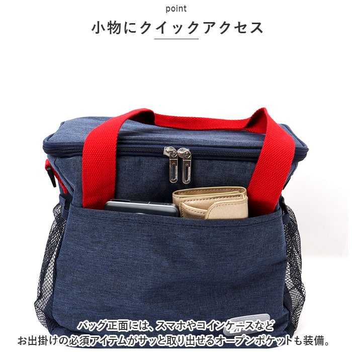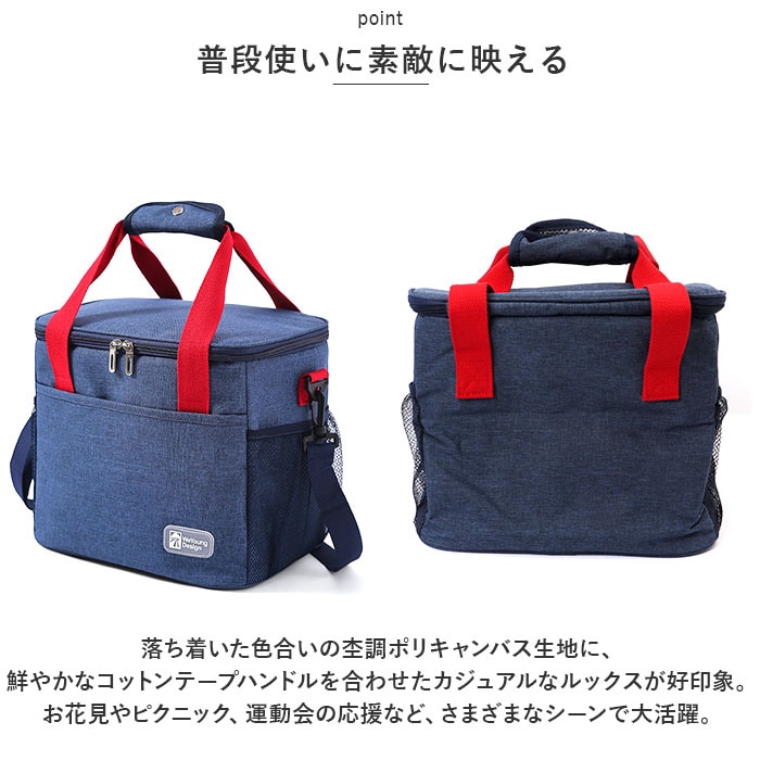 | 商品説明 | お弁当やデザートをたっぷり詰めて、サッと肩に掛けてお出掛け!イベントやアウトドアに大活躍の「2WAY 保温保冷 アウトドアランチバッグ」が新登場。【たっぷり入るスクエアフォルム】すっきりとしたスクエア型フォルムに、ランチボックスなら2~3段縦に積み重ねて、500mlペットボトルは横に倒さずにすっぽりと収納可能。【断熱スポンジで保冷効果長持ち】バッグの生地内部には断熱効果のある発泡ポリエチレンスポンジ素材を内蔵。バッグの中に保冷材を一緒に入れておけば、ランチタイムまでお弁当の美味しさが長持ち。【出し入れ楽々ラウンドファスナー】バッグの開口部はコの字型に大きく開いて、ランチやドリンクの出し入れが楽ちんなダブルファスナー式。きっちり閉まって冷気を逃さないのがポイント!【内側アルミシート加工】バッグの生地内側は、保温・保冷性に優れたアルミ蒸着シート仕上げ。はっ水性にも優れているので、汚れや水滴がサッと拭き取れてお手入れ簡単。【便利なサイドポケット】バッグの両側面には、カトラリーやウェットティッシュなど、ランチタイムにあると便利な小物がちょこんとしまえるメッシュサイドポケット付き。【小物にクイックアクセス】バッグ正面には、スマホやコインケースなどお出掛けの必須アイテムがサッと取り出せるオープンポケットも装備。【手持ち&ショルダーの2WAY仕様】バッグトップのハンドルでそのまま手持ちに。取り外しのできるショルダーベルトを使えば、肩に掛けてラクラク持ち運べる2WAY仕様。【使い方は自分次第】ランチバッグとしてはもちろん、スーパーで買った生鮮食品・デザートを持ち帰るときや、アウトドアへの食材の持ち運びにも大活躍。【普段使いに素敵に映える】落ち着いた色合いの杢調ポリキャンバス生地に、鮮やかなコットンテープハンドルを合わせたカジュアルなルックスが好印象。お花見やピクニック、運動会の応援など、さまざまなシーンで大活躍。 |