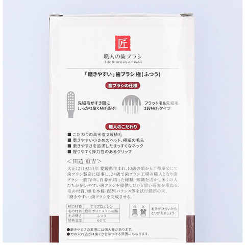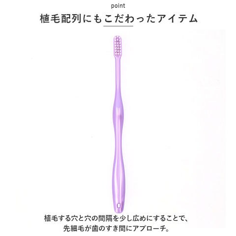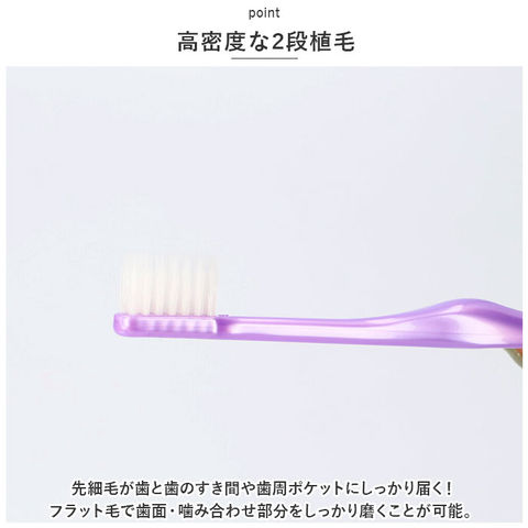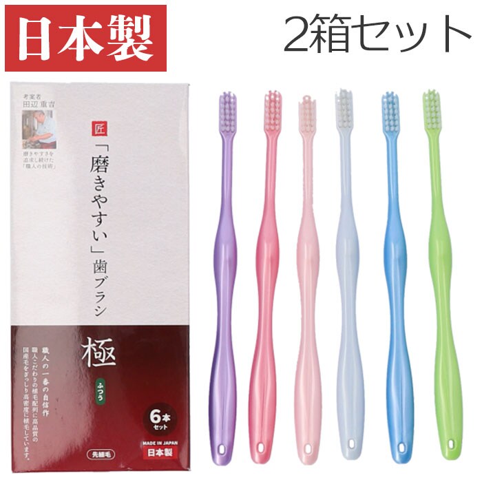 | 商品説明 | 国産毛をぎっしり高密度に植毛した職人の自信作!磨きやすさを追求した「磨きやすい歯ブラシ極 ふつう 6本組」2箱セット。【高密度な2段植毛】先細毛が歯と歯のすき間や歯周ポケットにしっかり届く!フラット毛で歯面・噛み合わせ部分をしっかり磨くことが可能。【植毛配列にもこだわったアイテム】植毛する穴と穴の間隔を少し広めにすることで、先細毛が歯のすき間にアプローチ。【小さめヘッド】奥歯まで届きやすく、しっかり磨けるヘッドサイズ。【弾力のあるグリップ】どの向きで握っても持ちやすい!弾力性のあるグリップなので過度な力が伝わらず、歯と歯ぐきに優しい仕様。【うれしい6本×2箱セット】取替用にはもちろん、夫婦や家族で一緒に使える♪1箱にカラー違いの6本入り。 |