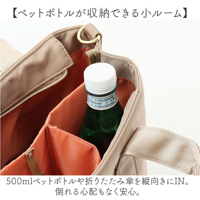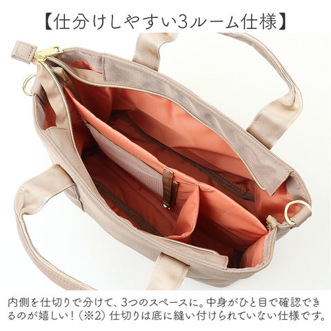 | 商品説明 | 【小物を見つけやすくストレスフリー】簡易に探し出せる”簡探”♪「Legato Largo 簡探バッグ 2WAYショルダー」。【簡単に荷物が探し出せて思わず感嘆】悩まず簡単に探し出せるよう、バッグの中を見やすくデザイン!ちょっとしたひと手間を軽減◎【タフに使えるお出かけの心強い味方】絶妙な光沢と質感の撥水ポリエステル生地。不意の雨にも対応でき、汚れも拭き取るだけ。(※1)完全防水ではありません。【お好みに合わせてスタイルチェンジ】手持ちはもちろん!長さ調節可能なショルダーを取り付け、肩掛けや斜め掛けも自在な2WAY☆【開閉スムーズ、安心の天ファスナー】ガバっと開いて取り出しやすく、ファスナーを閉じれば中身の飛び出しをガード。【仕分けしやすい3ルーム仕様】内側を仕切りで分けて、3つのスペースに。中身がひと目で確認できるのが嬉しい!(※2)仕切りは底に縫い付けられていない仕様です。【A5サイズ対応の大ルーム】大ルームはA5サイズが横向きにすっぽり。小物がざっくりまとまるサイズ感。【使い方いろいろ。万能な中ルーム】A5サイズが縦向きにぴったり。ミニポーチやガジェット類などもすっきり収納。【ペットボトルが収納できる小ルーム】・500mlペットボトルや折りたたみ傘を縦向きにIN。倒れる心配もなく安心。【サクッと取り出せて迷子知らず】・2つのポケットと、キーフック&Dカン付き。バッグの中で小物を探す手間が不要。【飽きが来ず長く愛用できるデザイン】落ち着きのあるカラーに、ゴールドの金具使いがアクセント。年代問わず使いやすい仕上がり。【ポケット仕様】内側:メッシュポケット×1前面:オープンポケット×1 |