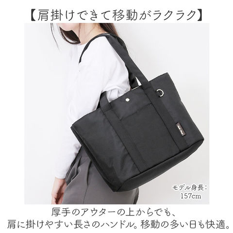 | 商品説明 | 【小物を見つけやすくストレスフリー】簡易に探し出せる「簡探」シリーズ!「Legato Largo 簡探バッグ A4トート」。【簡単に荷物が探し出せて思わず感嘆】悩まず簡単に探し出せるよう、バッグの中を見やすくデザイン!ちょっとしたひと手間を軽減◎【タフに使えるお出かけの心強い味方】絶妙な光沢と質感の撥水ポリエステル生地。不意の雨にも対応でき、汚れも拭き取るだけ。(※1)完全防水ではありません。【肩掛けできて移動がラクラク】厚手のアウターの上からでも、肩に掛けやすい長さのハンドル。移動の多い日も快適。【開閉スムーズ、安心の天ファスナー】ガバっと開いて取り出しやすく、ファスナーを閉じれば中身の飛び出しをガード。【仕分けしやすい3ルーム仕様】内側を仕切りで分けて、3つのスペースに。中身がひと目で確認できるのが嬉しい!(※2)仕切りは底に縫い付けられていない仕様です。【A4サイズ対応の大ルーム】大ルームはA4サイズが横向きにすっぽり。少し大きさのある物も、ざっくりまとまるサイズ感。【A5サイズ対応。万能な中ルーム】中ルームはA5サイズが縦向きに。ポーチやお弁当箱、エチケットグッズなどの収納にも便利。【ペットボトルが収納できる小ルーム】・500mlペットボトルや折りたたみ傘を縦向きにIN。倒れる心配もなく安心。【サクッと取り出せて迷子知らず】A4書類が収まる仕切りポケットを含め、3つのポケットとキーフック、Dカン付き。【飽きが来ず長く愛用できるデザイン】落ち着きのあるカラーに、ゴールドの金具使いがアクセント。年代問わず使いやすい仕上がり。【ポケット仕様】内側:メッシュポケット×1、オープンポケット(仕切り)×1前面:オープンポケット×1 |