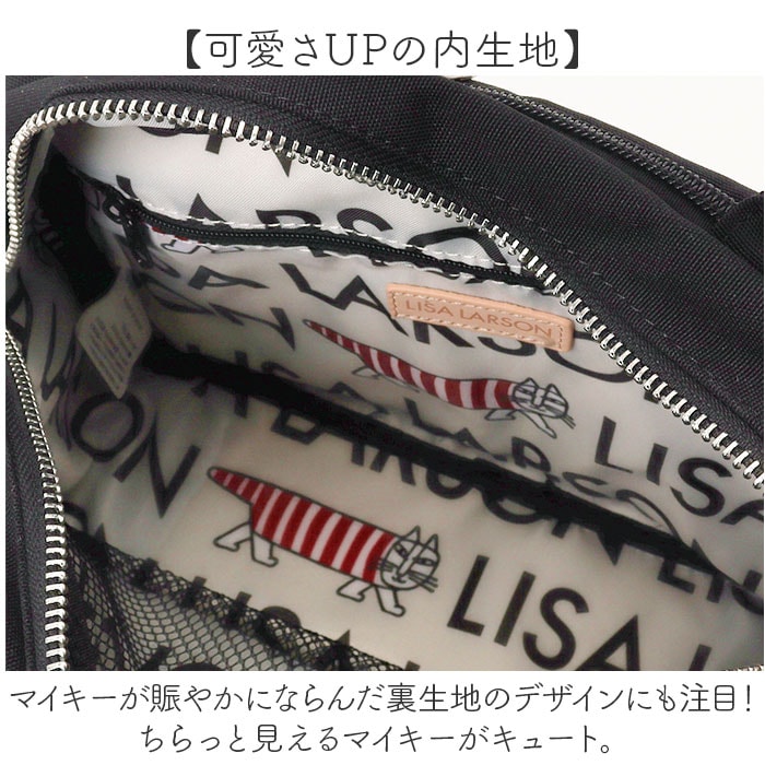 | 商品説明 | 【マイキーがチャームポイント】猫のキャラクターが可愛い♪LISA LARSONからウォレットショルダーが登場。【遊び心あるLTPKシリーズ】リサの遊び心を存分に感じられるバッグシリーズ「LTPK」温かみのある表情豊かさが持ち味【嬉しいお財布機能付き】背面ポケットはお財布機能があり、カードや現金をまとめて収納!【デイリー使いにピッタリ】コンパクトなサイズ感で毎日の持ち運びに便利なアイテム♪【しっかり収納】メインルームはマチ幅が広く、内外側に多数の収納ポケット付きで見た目以上の収納力◎【2WAYで使える】バッグにはハンドルがついておりトートとしても使用可能。ショルダーは斜めがけOK!【軽はっ水】はっ水加工を施したバッグ本体生地。ちょっとした雨や汚れがついても安心♪【エコライフを心がけている方に】ペットボトルを再利用したリサイクルポリエステルを使用。エコライフを心がけてい方にも。【チャームやケースの取り付けに】フロントにチャームやケースの取り付けに便利なDカンを配置。【可愛さUPの内生地】マイキーが賑やかにならんだ裏生地のデザインにも注目!ちらっと見えるマイキーがキュート。【細部までブランドのこだわりを】ブランドオリジナルのボタンや織ネームなど、こだわりあるデザインとパーツを使用。【スムーズに開くYKK製】ファスナーパーツはすべてYKK製で統一。引っ掛かりが少なくスムーズに開閉。【本革を使用】内側のロゴネームやファスナーの引手に本革を使用。見た目や耐久性もアリ!【裏生地と同じ柄のエコバッグ】バッグ裏生地と同じ柄の可愛いエコバック。コンパクトに畳めるスナップボタンバンド付き。【マイキーリフレクターチャーム】リフレクターチャームが自動車のライトをキラリと反射するので、夜間の外出でも安心。 |