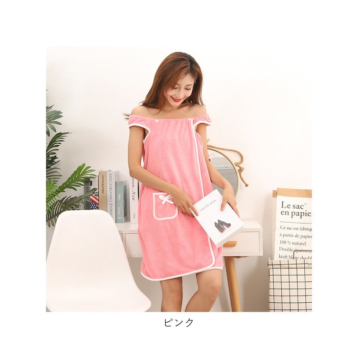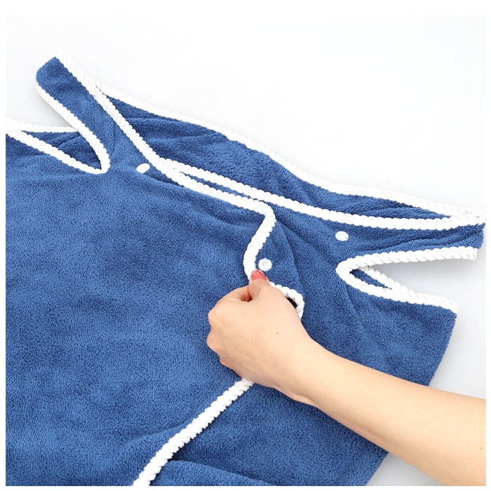 | 商品説明 | 忙しい女性にぴったり!サッと”着られる”バスタオルが登場。【ワンピースのようなデザイン】袖を通して、上部のボタンを2箇所留めるだけ◎ズリ落ちの心配も不要。【手軽に使えて便利】バタバタしがちなお風呂上がりに、サッと着られて便利!湯冷めや汗のべたつきを防ぎ、とっても快適◎【吸水速乾性のあるふんわり素材】柔らかく肌に優しい素材を使用。水気や汗を素早く吸収し、乾きが早いのも嬉しいポイント。【程よいボリューム感】薄すぎず厚すぎない生地感で使い勝手抜群。【小物ポケット付き】保湿クリームなどを入れておけるポケットを配置。【様々なシーンで】プールなどのレジャー、旅行先でも活躍。 |
