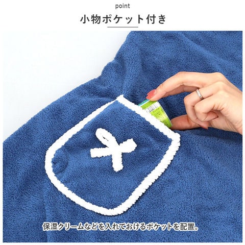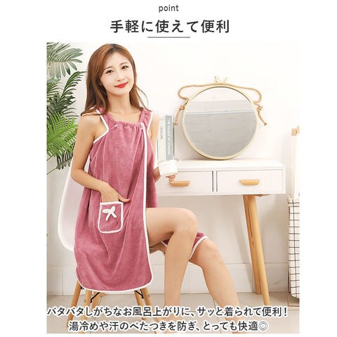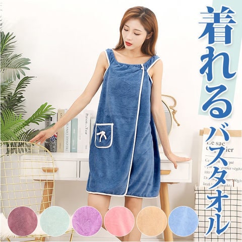 | 商品説明 | 忙しい女性にぴったり!サッと”着られる”バスタオルが登場。【ワンピースのようなデザイン】袖を通して、上部のボタンを2箇所留めるだけ◎ズリ落ちの心配も不要。【手軽に使えて便利】バタバタしがちなお風呂上がりに、サッと着られて便利!湯冷めや汗のべたつきを防ぎ、とっても快適◎【吸水速乾性のあるふんわり素材】柔らかく肌に優しい素材を使用。水気や汗を素早く吸収し、乾きが早いのも嬉しいポイント。【程よいボリューム感】薄すぎず厚すぎない生地感で使い勝手抜群。【小物ポケット付き】保湿クリームなどを入れておけるポケットを配置。【様々なシーンで】プールなどのレジャー、旅行先でも活躍。 |