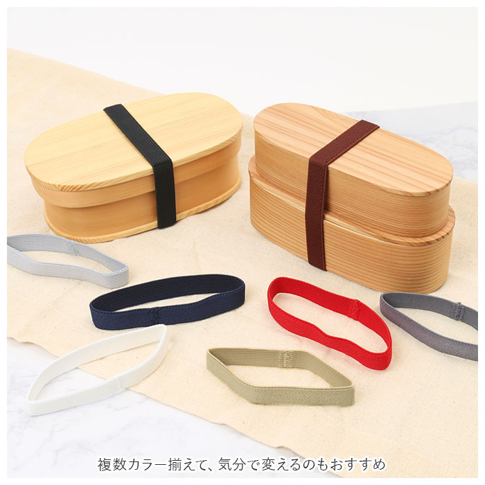 | 商品説明 | お弁当箱のワンポイントに使える、ランチバンドが発売。ランチバンドはファッションで例えると、スーツのネクタイのようなもの♪ランチバンドを付けるだけで、いつものお弁当箱の印象がパッと変わる!安心の日本製。伸縮性があって留めやすい◎お手持ちのお弁当箱の色に合わせて選べる、豊富なカラーバリエーション!複数カラー揃えて、気分で変えるのもおすすめ。 |