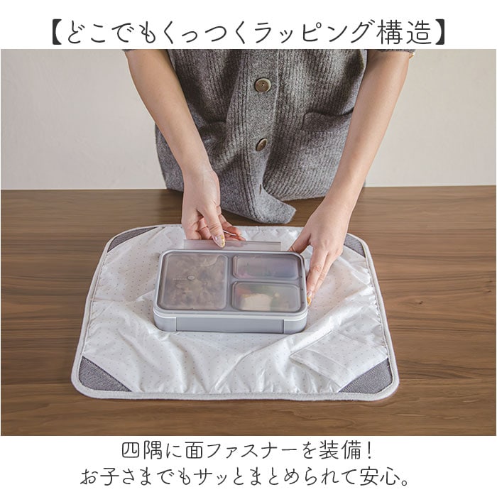 | 商品説明 | 【色んなカタチのお弁当箱に対応】お弁当箱をすっぽり包み込む♪「弁当箱専用 多機能ランチラッパー」が新登場。【風呂敷のように使い勝手抜群】丸型・薄型・四角・二段。どの形状のお弁当箱でも、四隅を中心に向かって折り込むだけ◎【どこでもくっつくラッピング構造】四隅に面ファスナーを装備!お子さまでもサッとまとめられて安心。【ランチョンマットとしても活用】広げれば、そのままマット代わりに。洗濯物も減らせて、ノンストレス。【保冷剤や調味料もひとまとめ】内側にポケットを1つ配置。お弁当の傷み防止用保冷剤や、おかずにかける調味料をIN。【内側にも嬉しい機能を搭載】保冷効果に、汚れがつきにく撥水コート。クッション性のある中綿入りで、衝撃をガード!【手洗いできて清潔をキープ】汚れが気になったら、自宅で手洗いできて衛生的◎お手入れもサクッと完了。 |