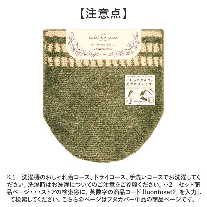 | 商品説明 | 【北欧風ナチュラルで彩る】北欧風のナチュラルデザインで、サニタリールームを温かく彩る「兼用トイレカバー」。【サニタリールームを模様替え】ナチュラルカラーを生地全体に採用。いつものサニタリールームが温かみある空間に変身♪【洗浄・暖房どちらもOK】装着は粘着シールをペタッと貼るだけ!買い間違いをせず、引っ越しなどで買い直しもナシ◎【U・O型タイプにも対応】フタのフチに沿うように粘着シールを貼ればU・O型タイプにも対応!【ふわふわな触り心地♪】ボリュームあるパイル地を使用し、ふわふわな触り心地が魅力的。【汚れが気になったら洗濯機に】汚れが気になったらそのまま洗濯機で丸洗いができるのも嬉しいポイント。※1【セットで使うのもオススメ♪】北欧風デザインがかわいい「ルオント」シリーズ。別ページにてセット販売中※2【注意点】※1 洗濯機のおしゃれ着コース、ドライコース、手洗いコースでお洗濯してください。洗濯時はお洗濯についてのご注意をご参照ください。※2 セット商品ページ・・・ストアの検索窓に、英数字の商品コード「luontoset2」を入力して検索してください。こちらのページはフタカバー単品の商品ページです。 |