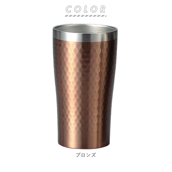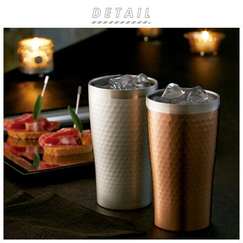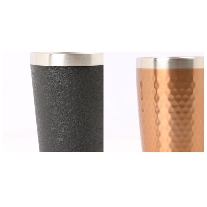 | 商品説明 | いつものコーヒータイムやカクテルタイムが贅沢なひと時に。luxe(リュクス)のメタルサーモタンブラー。本体内側と外側が真空断熱されたステンレス二重構造タイプ。熱い飲み物を入れてタンブラーを持っても表面が熱くなく、冷たい飲み物を注いだ時の結露も出にくいのがポイント!飲み口がオープンになったタンブラーながら、真空二重構造なので、冷たい飲み物や温かいコーヒーも飲み頃温度を保って長く楽しめる。表面は高級感のある打ち出し加工仕上げでツヤのあるメタリック調と、細かい凹凸でツヤのないマットタイプの2種類。飲み口がシルバー色に縁取られたスタイリッシュなデザイン。自宅でコーヒーやカクテルを楽しむ時だけでなく、オフィスの休憩時間用にもぴったり。いつものコーヒータイムが至福の時間へと早変わり!家族色違いで揃えたり、贈り物としてもおすすめ♪ |