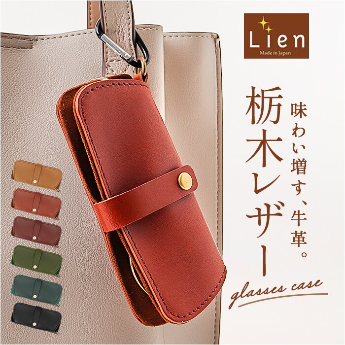 Lien 栃木レザージーンズメガネケース【カーキ】