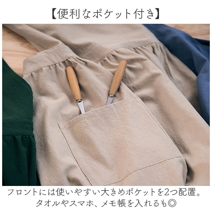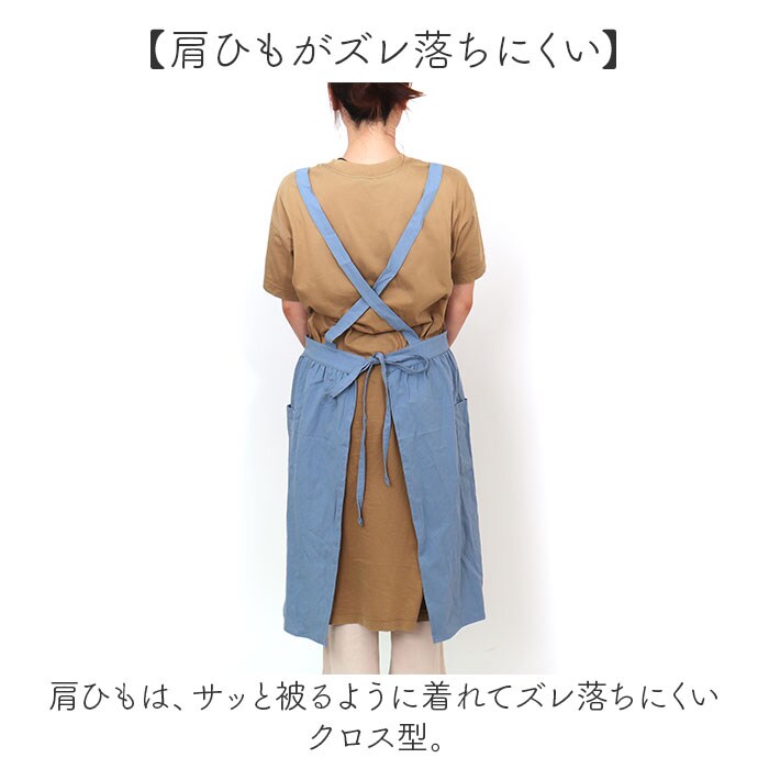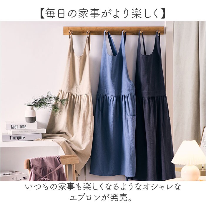 | 商品説明 | 【毎日の家事がより楽しく】いつもの家事も楽しくなるようなオシャレなエプロンが発売。【洋服感覚で着こなし】ワンピースのようなデザインで洋服感覚で着こなせるオシャレさが魅力☆【実用性もばっちり】タンクトップのような胸元の作りと膝下までの着丈で体を覆い汚れから守ってくれる◎【さらりとした肌触り】コットンファブリックを使用し、サラッと爽やかな肌触りが特徴!軽い着心地もGOOD。【肩ひもがズレ落ちにくい】肩ひもは、サッと被るように着れてズレ落ちにくいクロス型。【キュッと結んで可愛く】腰ひもはリボンタイプでキュッと結んで可愛く決まるのも嬉しいポイント。【便利なポケット付き】フロントには使いやすい大きめポケットを2つ配置。タオルやスマホ、メモ帳を入れるも◎ |