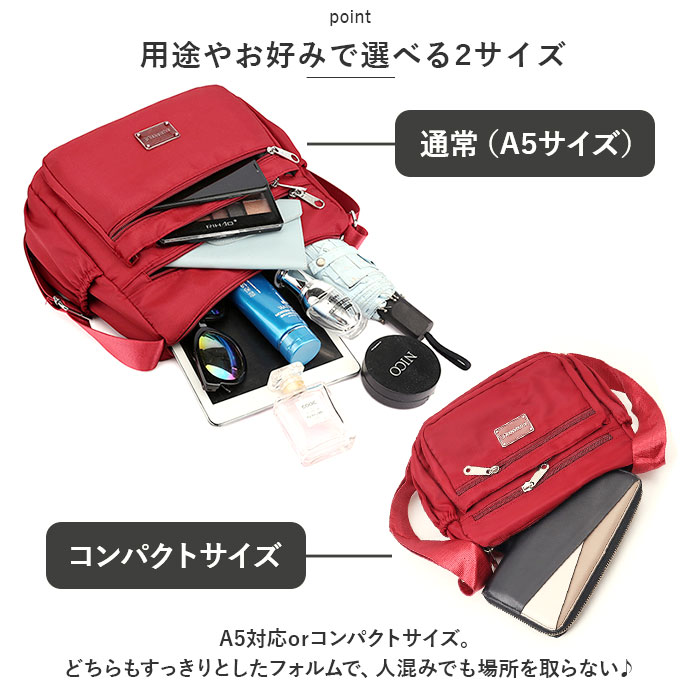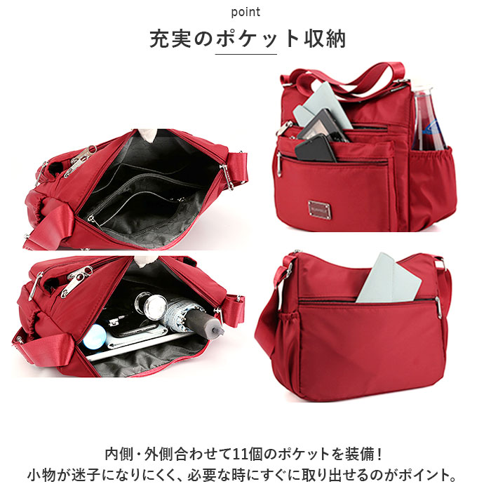 | 商品説明 | すっきり収納できる♪デイリーから旅行など、様々なシーンで大活躍のショルダーバッグが登場。【ちょうどいいサイズ感】手軽に持ち出せるサイズ感ながら、お出かけに必要な小物がしっかりひとまとめ!両手が空くので、アクティブシーンにもおすすめ◎【安心のファスナー開口】開口部はファスナー式。中身がこぼれ落ちにくく、プライバシーを確保。【A5サイズもタブレットも】内側はA5サイズのノートやタブレットが、横向きにすっぽり。程よいマチ設計でコスメポーチなども収まりつつ、満員電車などの人混みでも場所を取らない♪【充実のポケット収納】内側・外側合わせて11個のポケットを装備!小物が迷子になりにくく、必要な時にすぐに取り出せるのがポイント。【使い勝手ばっちり】体に負担がかかりにくい軽量設計。前後にソフトなクッション材を内蔵し、中身の傷つきをガード。ボディラインに優しく寄り添い、長時間の移動もストレスフリー。【お気に入りをチョイス】ベーシックカラーや差し色になるカラーをラインナップ!どんなコーデにも合わせやすいシンプルなワンカラーデザインで、フロントのロゴ入りプレートがアクセント。【ポケット仕様】内側:ファスナーポケット×2、オープンポケット×3前面:ファスナーポケット×3サイド:ギャザーポケット×2背面:ファスナーポケット×1 |