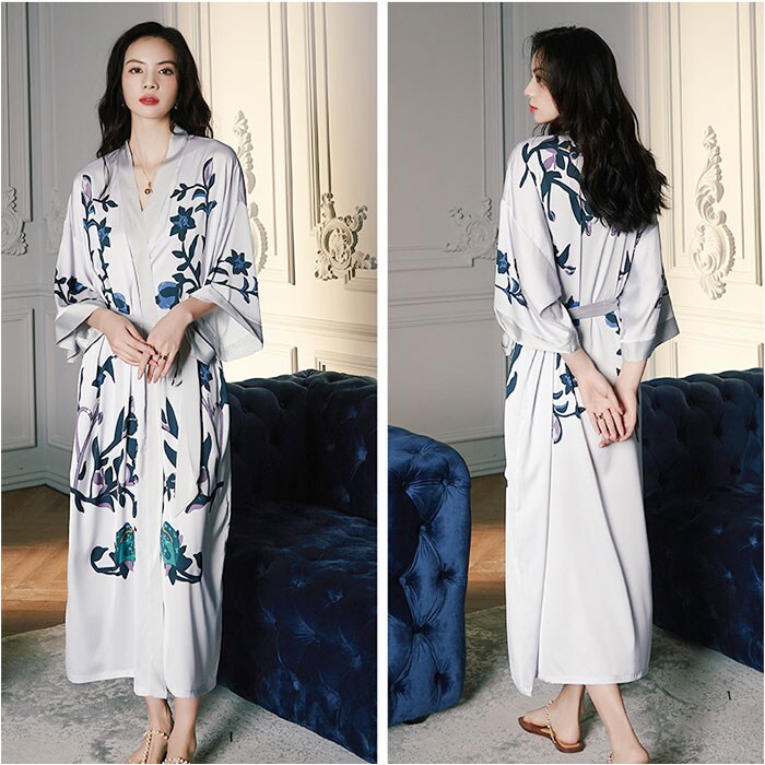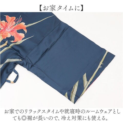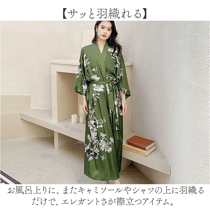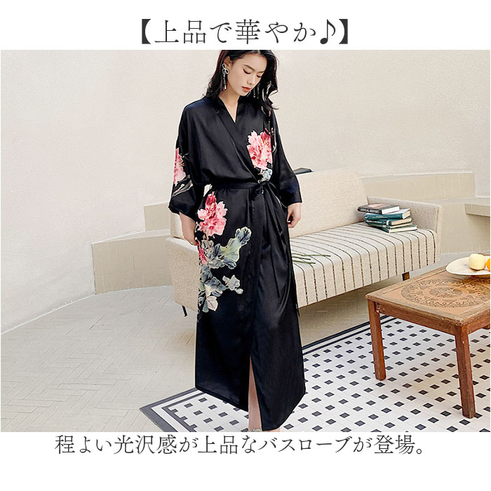 | 商品説明 | 【上品で華やか♪】程よい光沢感が上品なバスローブが登場。【サッと羽織れる】お風呂上りに、またキャミソールやシャツの上に羽織るだけで、エレガントさが際立つアイテム。【お家タイムに】お家でのリラックスタイムや就寝時のルームウェアとしても◎裾が長いので、冷え対策にも使える。【紐付きではだけにくい】内側に紐付きではだけにくい!ウエストのループに通して結べるリボン付き。【クラシカルな雰囲気に】シルクのような上品な光沢感が魅力♪肌馴染みの良いカラーと上品な花柄でクラシカルな仕上がり。 |