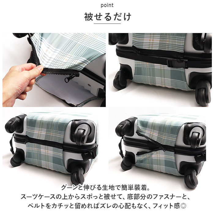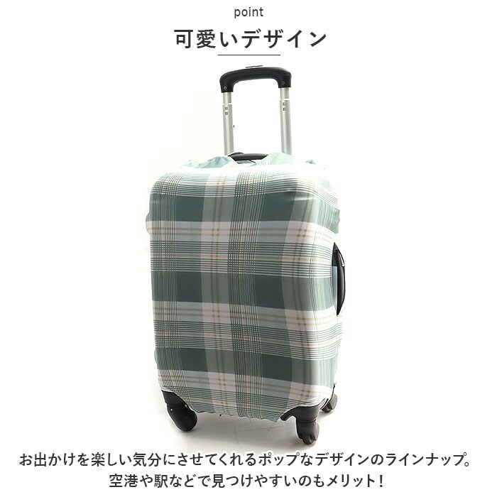 | 商品説明 | ポップなデザインで旅行を彩る♪グーンと伸びて簡単装着◎「スーツケースカバー」が登場。【スーツケースの傷対策に】ポリエステル使用の厚手の生地なので、耐摩耗性にも優れスーツケースを傷から保護してくれる。旅行や出張にピッタリのアイテム。【可愛いデザイン】お出かけを楽しい気分にさせてくれるポップなデザインのラインナップ。空港や駅などで見つけやすいのもメリット!【被せるだけ】グーンと伸びる生地で簡単装着。スーツケースの上からスポっと被せて、底部分のファスナーと、ベルトをカチッと留めればズレの心配もなく、フィット感◎【サイズ、デザインいろいろ】スーツケースのサイズに合わせてチョイスOK!デザインも豊富なのでご家族やカップルでお揃いにするのもGOOD♪ |