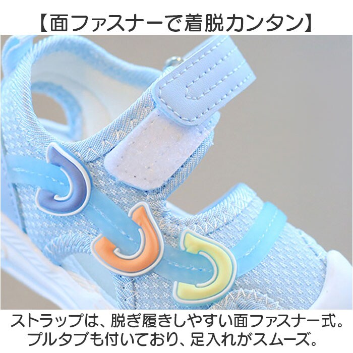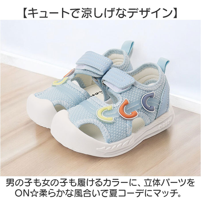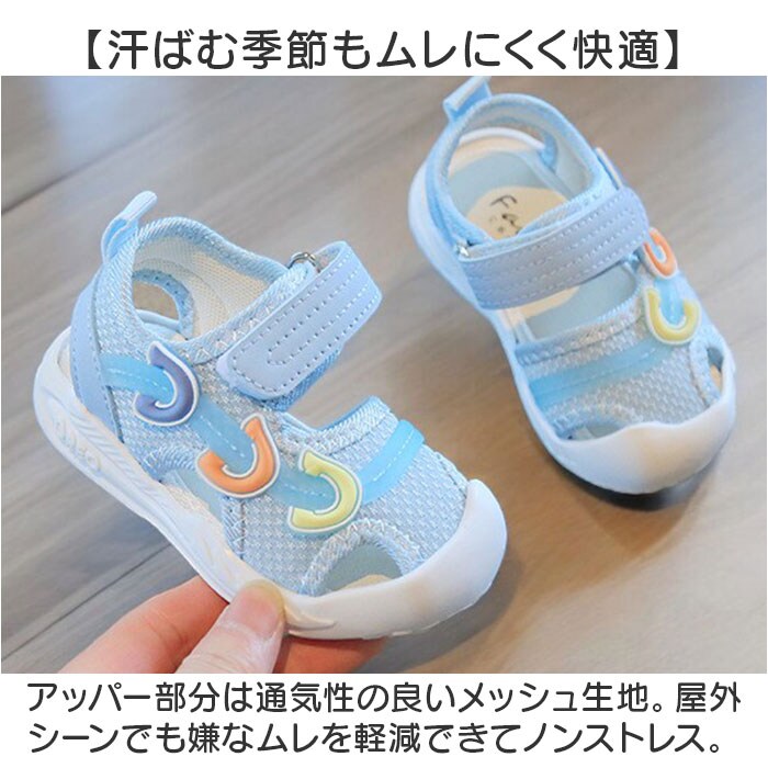 | 商品説明 | 【夏のお出かけにぴったりアイテム】優しい履き心地&つま先まで守って安心!水陸両用タイプの「ベビーサンダル」が新登場。【レジャーや水遊びで活躍間違いなし】プールや海、川遊びなど!水場でも気にせず履ける、嬉しい水陸両用タイプ♪【面ファスナーで着脱カンタン】ストラップは、脱ぎ履きしやすい面ファスナー式。プルタブも付いており、足入れがスムーズ。【軽やかで自分サイズにフィット】動きを妨げず歩きやすい、軽量なつくり。ストラップの長さも微調整できて、脱げにくい◎【沢山遊び回っても大丈夫】足裏に当たる部分もソフトな質感。足にかかる衝撃を抑え、疲れにくいのもポイント。【屈曲性があり、歩きやすさが向上】足の動きに合わせて柔軟に曲がる形状。蹴り上げやすくつまずきにくい!【安心設計でサンダルデビューにも♪】爪割れやケガを防止する、つま先ガード付き。つま先を広めに設けて締め付け感もゼロ。【滑りにくく安定感のあるソール】程よいグリップ力がある、フラットソール。安定した歩行をサポート。【汗ばむ季節もムレにくく快適】アッパー部分は通気性の良いメッシュ生地。屋外シーンでも嫌なムレを軽減できてノンストレス。【キュートで涼しげなデザイン】男の子も女の子も履けるカラーに、立体パーツをON☆柔らかな風合いで夏コーデにマッチ。 |