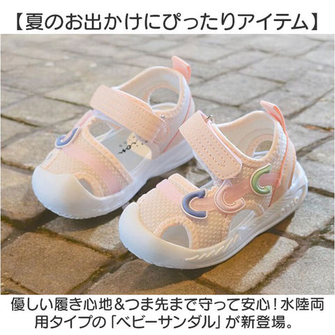 | 商品説明 | 【夏のお出かけにぴったりアイテム】優しい履き心地&つま先まで守って安心!水陸両用タイプの「ベビーサンダル」が新登場。【レジャーや水遊びで活躍間違いなし】プールや海、川遊びなど!水場でも気にせず履ける、嬉しい水陸両用タイプ♪【面ファスナーで着脱カンタン】ストラップは、脱ぎ履きしやすい面ファスナー式。プルタブも付いており、足入れがスムーズ。【軽やかで自分サイズにフィット】動きを妨げず歩きやすい、軽量なつくり。ストラップの長さも微調整できて、脱げにくい◎【沢山遊び回っても大丈夫】足裏に当たる部分もソフトな質感。足にかかる衝撃を抑え、疲れにくいのもポイント。【屈曲性があり、歩きやすさが向上】足の動きに合わせて柔軟に曲がる形状。蹴り上げやすくつまずきにくい!【安心設計でサンダルデビューにも♪】爪割れやケガを防止する、つま先ガード付き。つま先を広めに設けて締め付け感もゼロ。【滑りにくく安定感のあるソール】程よいグリップ力がある、フラットソール。安定した歩行をサポート。【汗ばむ季節もムレにくく快適】アッパー部分は通気性の良いメッシュ生地。屋外シーンでも嫌なムレを軽減できてノンストレス。【キュートで涼しげなデザイン】男の子も女の子も履けるカラーに、立体パーツをON☆柔らかな風合いで夏コーデにマッチ。 |