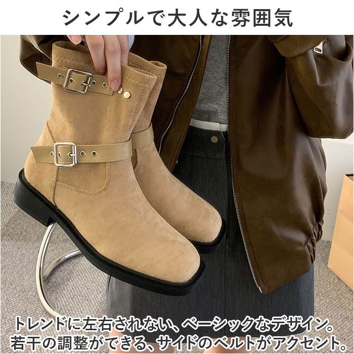 | 商品説明 | 足元からおしゃれに♪秋冬コーデにぴったりな「ショートブーツ」が新登場。【シンプルで大人な雰囲気】トレンドに左右されない、ベーシックなデザイン。若干の調整ができる、サイドのベルトがアクセント。【いつでも足入れがスムーズ】ファスナーなどがなく、すぽっと履けてラクチン。ブーツを脱ぐ場面でも手間取らない!【安定感があり、歩きやすさが向上】前後の差を抑えた程よい厚みのソール。屈曲性がありつま先にかけてやや上を向いた形状で、つまづきにくく蹴り上げやすさもばっちり◎【気軽に履けてヘビロテ間違いなし】ヤスリなどで軽くこすることで、起毛感を出したヌバック素材。傷や汚れが目立ちにくく、お手入れもラクラク。【コーデを選ばず使えるカラー】どんなアイテムとも合わせやすい、落ち着きのあるカラーをラインナップ。お気に入りを選んで、秋冬コーデの相棒に☆ |