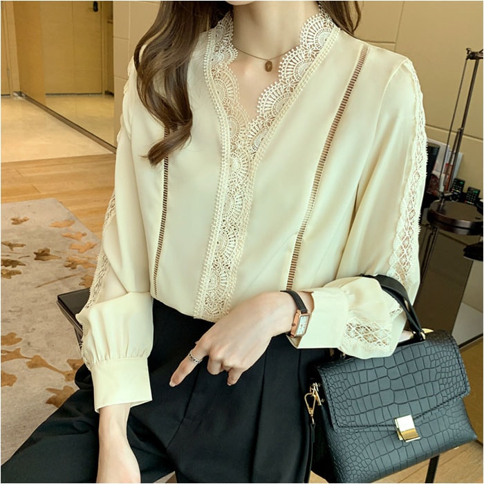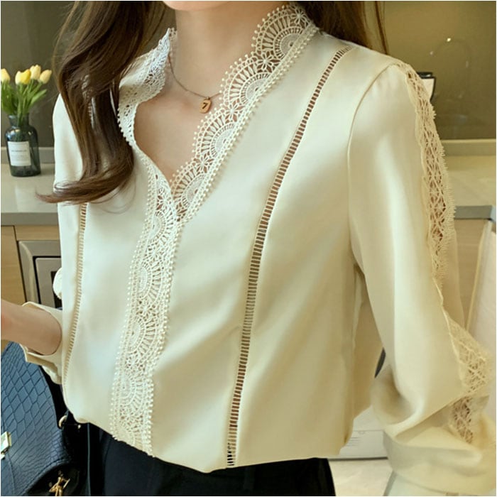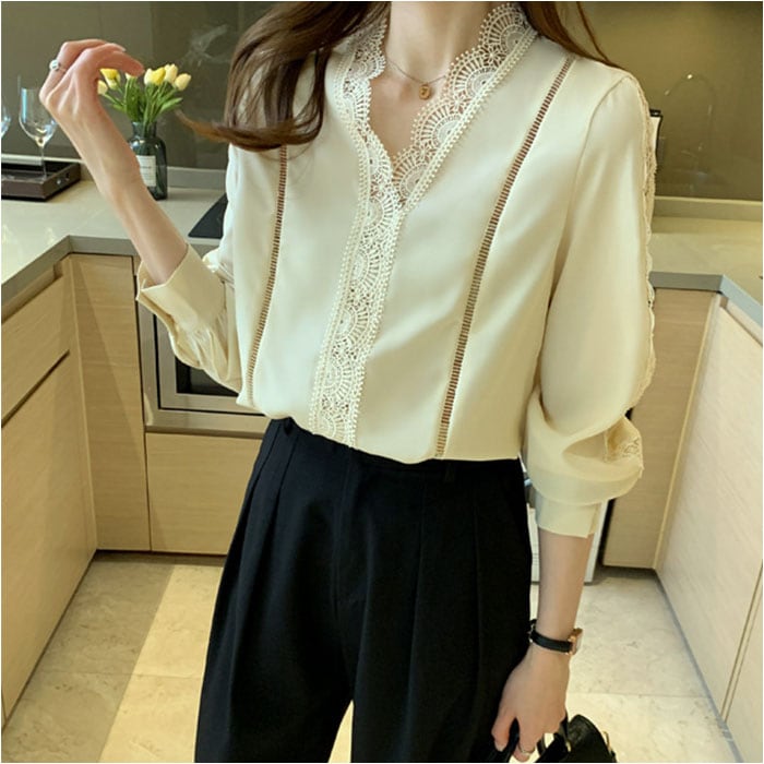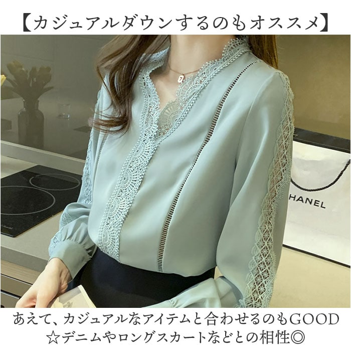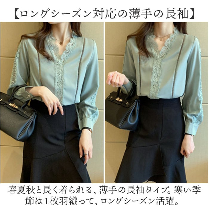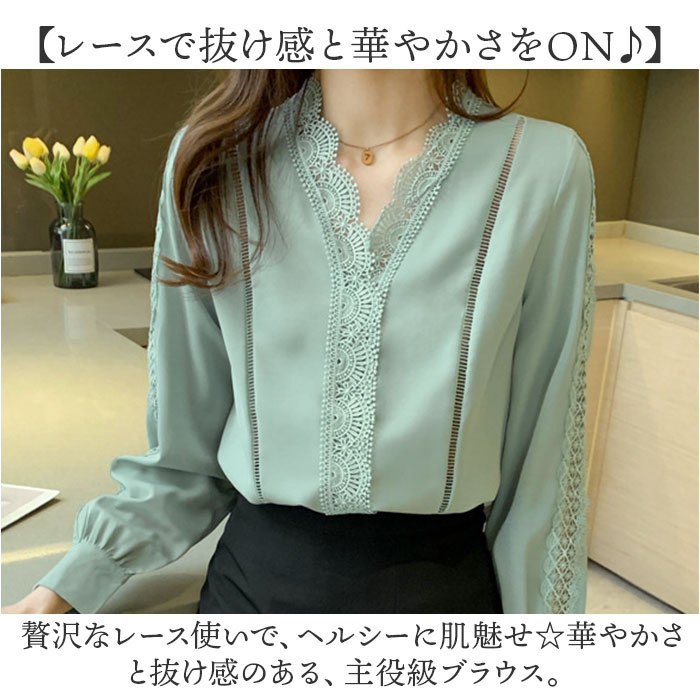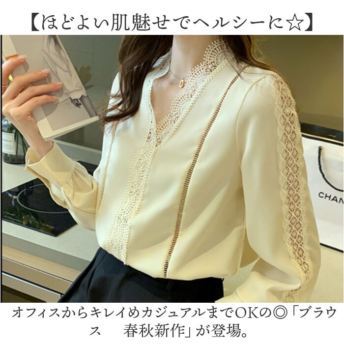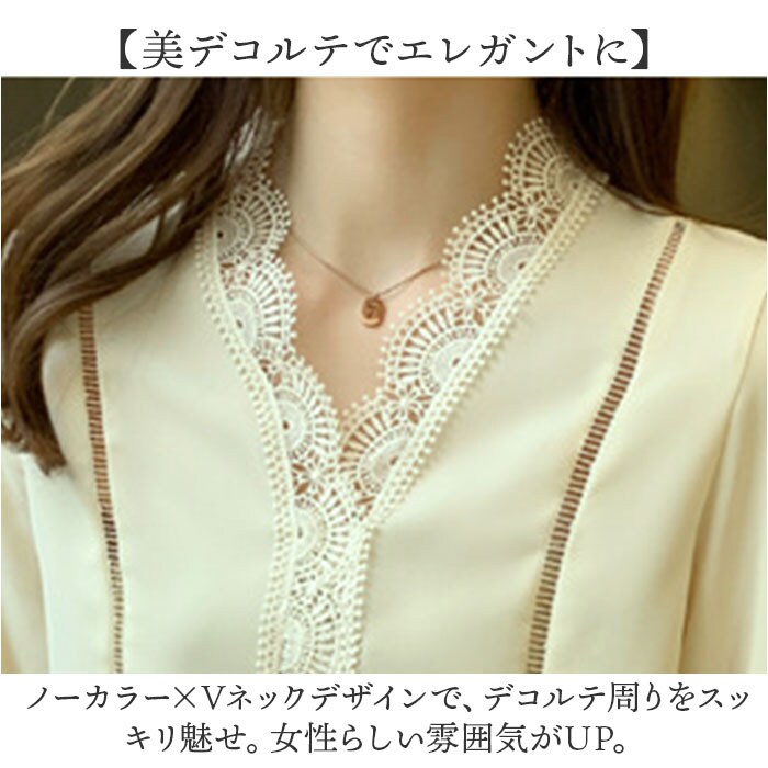 | 商品説明 | 【ほどよい肌魅せでヘルシーに☆】オフィスからキレイめカジュアルまでOKの◎「ブラウス 春秋新作」が登場。【レースで抜け感と華やかさをON♪】贅沢なレース使いで、ヘルシーに肌魅せ☆華やかさと抜け感のある、主役級ブラウス。【ちょっとキレイに仕上げたい日に】オフィススタイルや、お食事会、おしゃれしたい日にぴったりな気品のある、オトナデザイン。【美デコルテでエレガントに】ノーカラー×Vネックデザインで、デコルテ周りをスッキリ魅せ。女性らしい雰囲気がUP。【ロングシーズン対応の薄手の長袖】春夏秋と長く着られる、薄手の長袖タイプ。寒い季節は1枚羽織って、ロングシーズン活躍。【カジュアルダウンするのもオススメ】あえて、カジュアルなアイテムと合わせるのもGOOD☆デニムやロングスカートなどとの相性◎ |