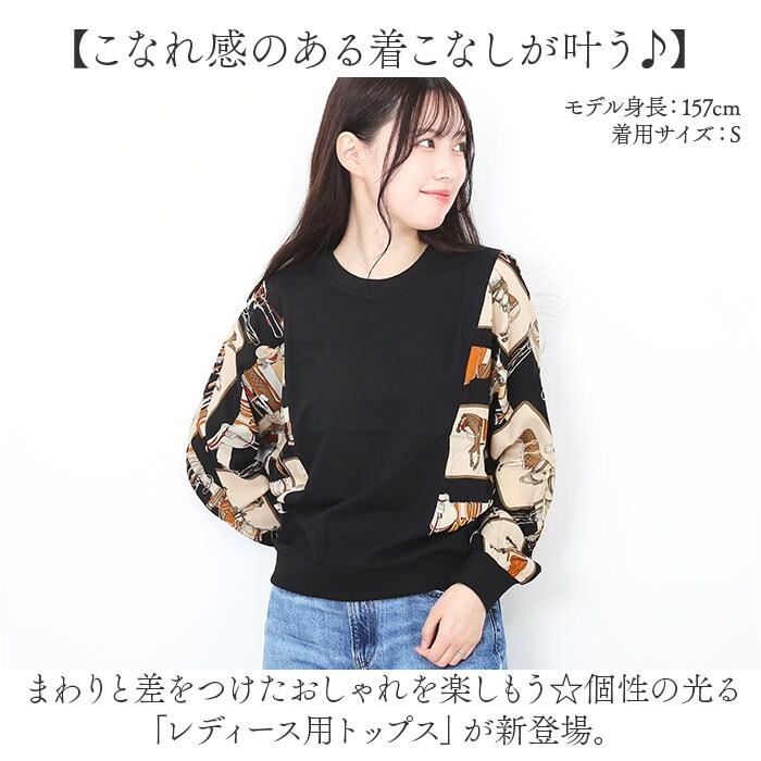 | 商品説明 | 【こなれ感のある着こなしが叶う♪】まわりと差をつけたおしゃれを楽しもう☆個性の光る「レディース用トップス」が新登場。【目を惹く切り替えデザイン】異なる質感の生地とデザインをミックス。シンプルなブラックカラーに、プリント柄が映える♪【さらりと軽やかでノンストレス】チクチクせず、程よいゆったり感で締め付けもゼロ。薄手の素材で、1枚でも快適な着心地。【優しげな印象のラウンドネック】胸元をガードしつつ、首元が詰まりすぎないデザイン。やや長めのネックレスとも相性抜群。【ダボッとしないキレイなシルエット】袖口と裾はリブ仕様。優しくフィットし、キレイめなパンツにも素敵にマッチ!【頭から被るだけで身支度スマート】ボタンやファスナーがなく、着替えがラクラク。旅行などにもおすすめ。 |