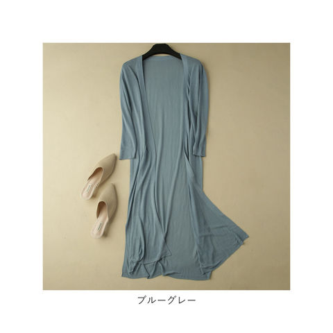 カーディガン ロング丈 涼しい lyca1904【ブルーグレー】【Mサイズ】