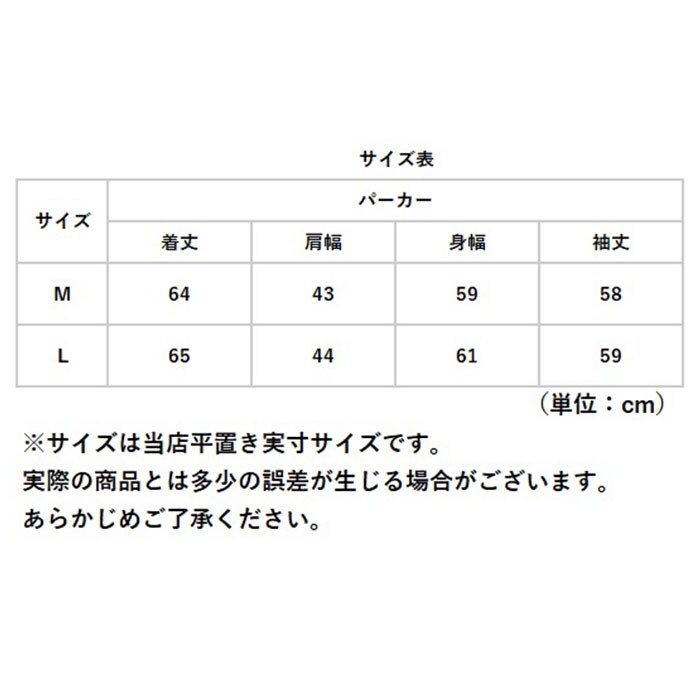 | サイズ | [レディース] ・Mサイズ ・Lサイズ ※サイズについて詳細は、商品画像の中にあるサイズ表をご覧くださいませ。 |