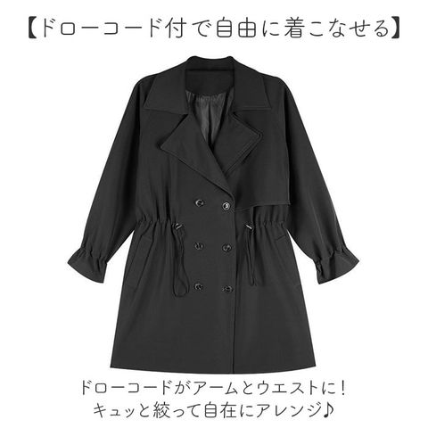 | 商品説明 | 【定番スタイルが嬉しい☆】・ON・OFF問わずマルチに活躍するコートが登場。【季節の変わり目に大活躍!】裏地付で薄めの生地は、滑りが良く着脱しやすいのもポイント。調節が難しい季節の変わり目にぴったり!【スッキリミドル丈で軽やかに♪】絶妙なミドル丈は上品で、羽織るだけで洗練された印象に。軽やかな着心地も魅力。【飽きがこない、定番スタイル☆】シンプルさとベーシックさを大切にした、流行り廃りのないデザインでずっと愛用できる♪【ドローコード付で自由に着こなせる】ドローコードがアームとウエストに!キュッと絞って自在にアレンジ♪【便利なポケットを配置】両サイドにポケットを配置。スマホなどをサッと出し入れでき、快適さがUP!【様々なコーデに対応】落ち着きのある無地のワンカラー。カジュアルにもキレイめファッションにも着まわせる優秀アイテム! |