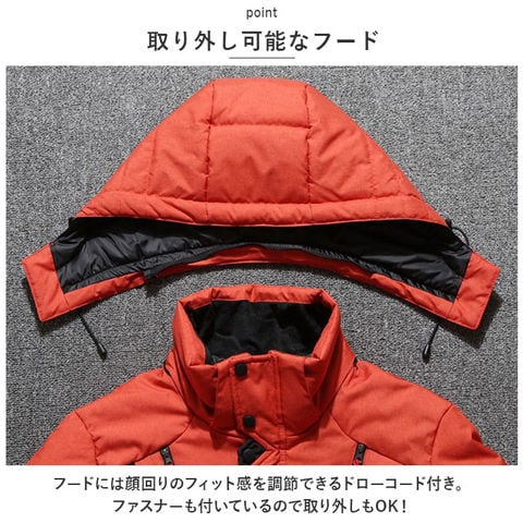 | 商品説明 | ふんわりあったか♪ メンズダウンコート が発売。【防寒性◎】中にダウンとフェザーが入っており、外気が侵入しにくく中の暖かさをしっかりキープ!フード付きだから頭からひざ下までしっかり防寒できるのも嬉しいポイント。【リブ袖】手首にぴったりフィットするリブ袖は冷たい風が入りにくい◎親指を通せる穴が開いており、ズレない作りに。【裏起毛の襟】襟の内側は起毛素材となっており肌あたりなめらか♪暖かさもUP♪【取り外し可能なフード】フードには顔回りのフィット感を調節できるドローコード付き。ファスナーも付いているので取り外しもOK!【ポケット搭載】カードや鍵等の小物を入れるのに便利なポケットを左袖部に搭載。フロントにもスマホがすっぽり入るポケットを配置。(フロント上部と左脇下のファスナーはフェイクポケットです。予めご了承ください。)【様々なシーンに】タウンユースはもちろん、しっかりと防寒対策ができるからウィンタースポーツにもおススメ♪冬に大活躍のアイテム。 |