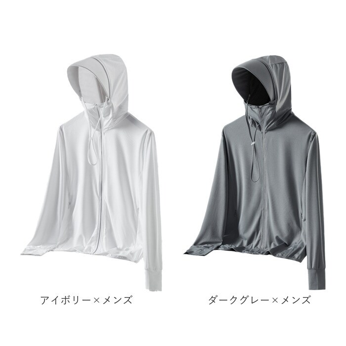 パーカー長袖 ラッシュガード UVカット【ダークグレー×メンズ】【XLサイズ】