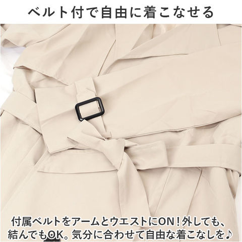 | 商品説明 | 季節の変わり目のマストアイテム☆お仕事もお休みも、毎日着たくなる「トレンチコート」が登場。【ONもOFFも使えるトレンチコート】シンプルなので、どんなスタイルにも幅広くマッチ。お仕事もお休みもOK、毎日着たくなる♪【季節の変わり目にぴったり!】裏地付の薄めの生地は、調節が難しい季節の変わり目にぴったり!1つは欲しいマストアイテム。【スッキリロング丈でスタイルUP】スタイルUP効果のあるスッキリロング丈が魅力。足さばきの良い深めのスリット入で動きやすい【長く愛用できるベーシックデザイン】シンプルさとベーシックさを大切にした、流行り廃りのないデザインなので長く愛用できる。【ベルト付で自由に着こなせる】付属ベルトをアームとウエストにON!外しても、結んでもOK。気分に合わせて自由な着こなしを♪【便利なポケットを配置】両サイドにポケットを配置。スマホなどをサッと出し入れできるので、おでかけ中も快適に過ごせる。【選べる大人のカラーバリエーション】肌なじみの良いカラーや大人っぽいベーシックカラーをご用意。お好みをチョイス☆ |