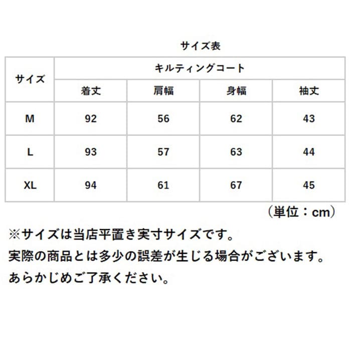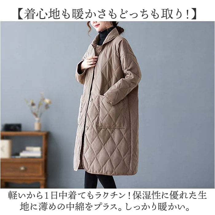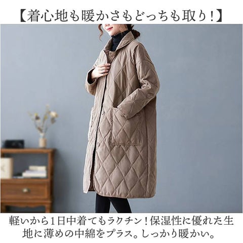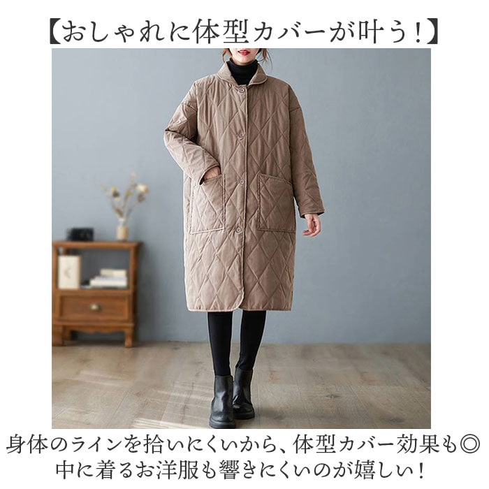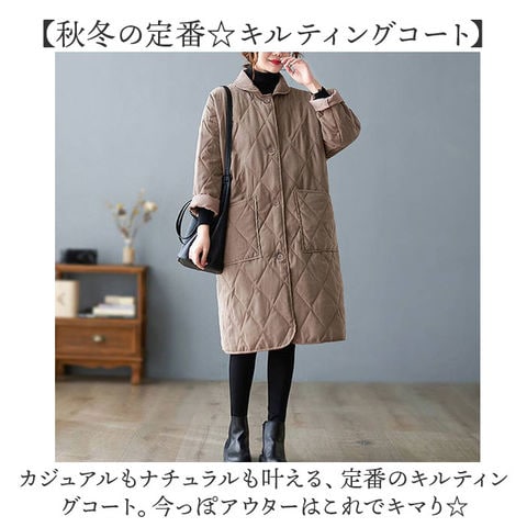 | 商品説明 | 【オーバーシルエットでこなれ感UP】軽くてあったか♪毎日使いにぴったりな「キルティングコート」が登場。【秋冬の定番☆キルティングコート】カジュアルもナチュラルも叶える、定番のキルティングコート。今っぽアウターはこれでキマり☆【着心地も暖かさもどっちも取り!】軽いから1日中着てもラクチン!保湿性に優れた生地に薄めの中綿をプラス。しっかり暖かい。【ゆるっとオーバーでトレンド感UP】落ち感が魅力の、オーバーシルエット。着るだけで今っぽく、トレンドスタイルがキマる。【おしゃれに体型カバーが叶う!】身体のラインを拾いにくいから、体型カバー効果も◎中に着るお洋服も響きにくいのが嬉しい!【シンプルワントーン仕上げ☆】可愛らしいシルエットだけど、ワントーン仕上げで大人っぽい雰囲気に。年齢気にせずに着用OK☆【ポケット2つが便利】両サイドにポケットを配置。スマホなどの小物をサッと収納できる大きめサイズがGOOD。 |