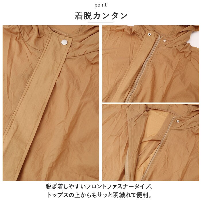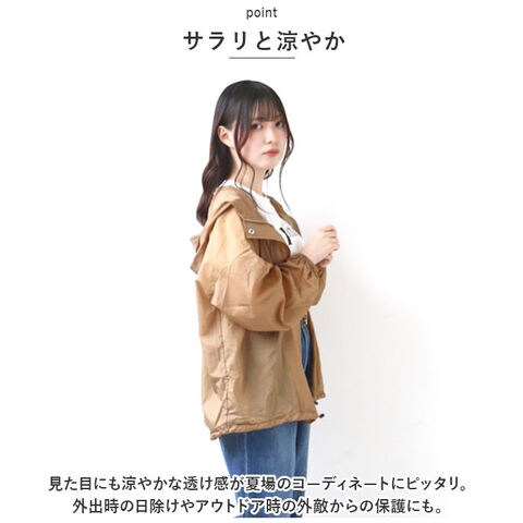 | 商品説明 | サラリと涼やか、夏場の外出に大活躍!薄手のパーカーが新発売♪【サラリと涼やか】見た目にも涼やかな透け感が夏場のコーディネートにピッタリ。外出時の日除けやアウトドア時の外敵からの保護にも。【ゆったりデザイン】腰が隠れるほどの丈感。ゆったりとしたつくりで、気になる部分をふんわりカバー◎【心地よいフィット感】裾部分にはフィット感を調節できるドローコード付き。袖はギャザーゴムが入っておりアクティブに動けるのもポイント。【小顔効果も】首元までカバーできるフード付きで小顔効果も?!【着脱カンタン】脱ぎ着しやすいフロントファスナータイプ。トップスの上からもサッと羽織れて便利。【持ち運びに便利】くるくるっと丸めてコンパクトに収納できる!バッグの中でもかさばらないのが嬉しい♪【合わせやすいカラー】森ガールにピッタリのカラーから、どんな洋服にも合わせやすい定番カラーまで展開。トップスとしても、アウターとしても今日のコーディネートに一躍貢献。 |